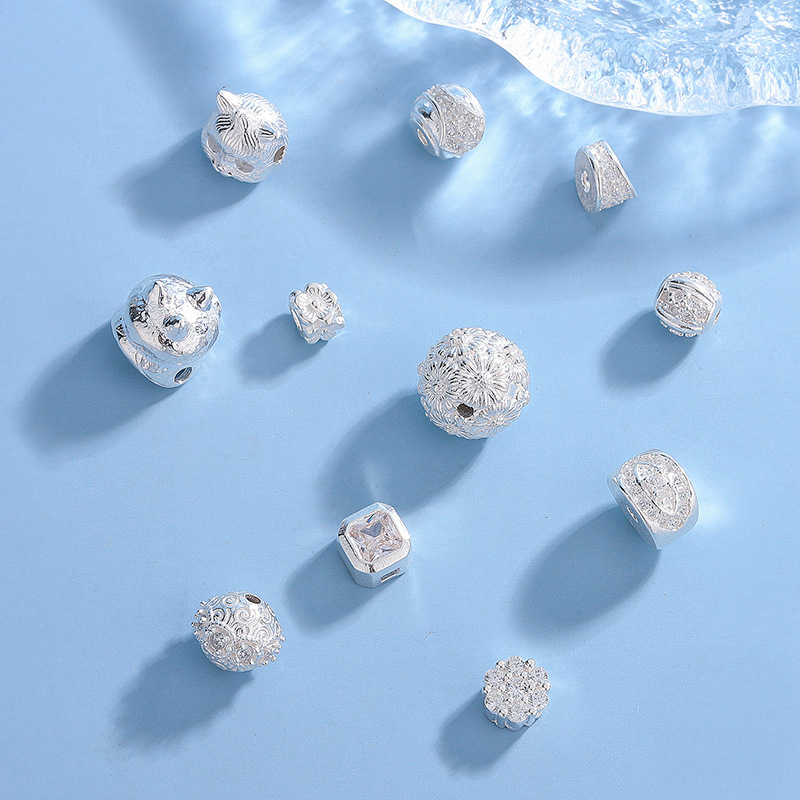 足银999银饰配件分色花隔珠DIY手工编绳手串隔珠饰品配件批发轻奢