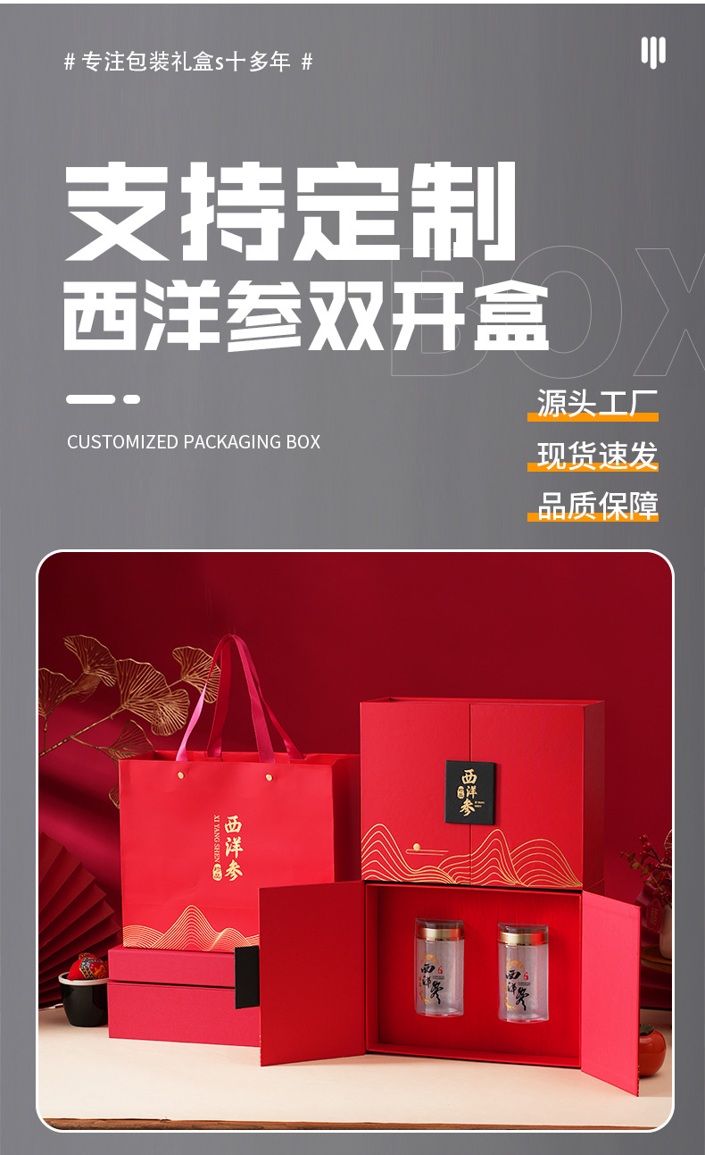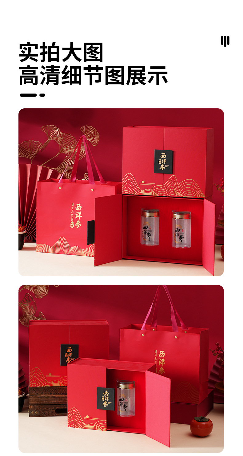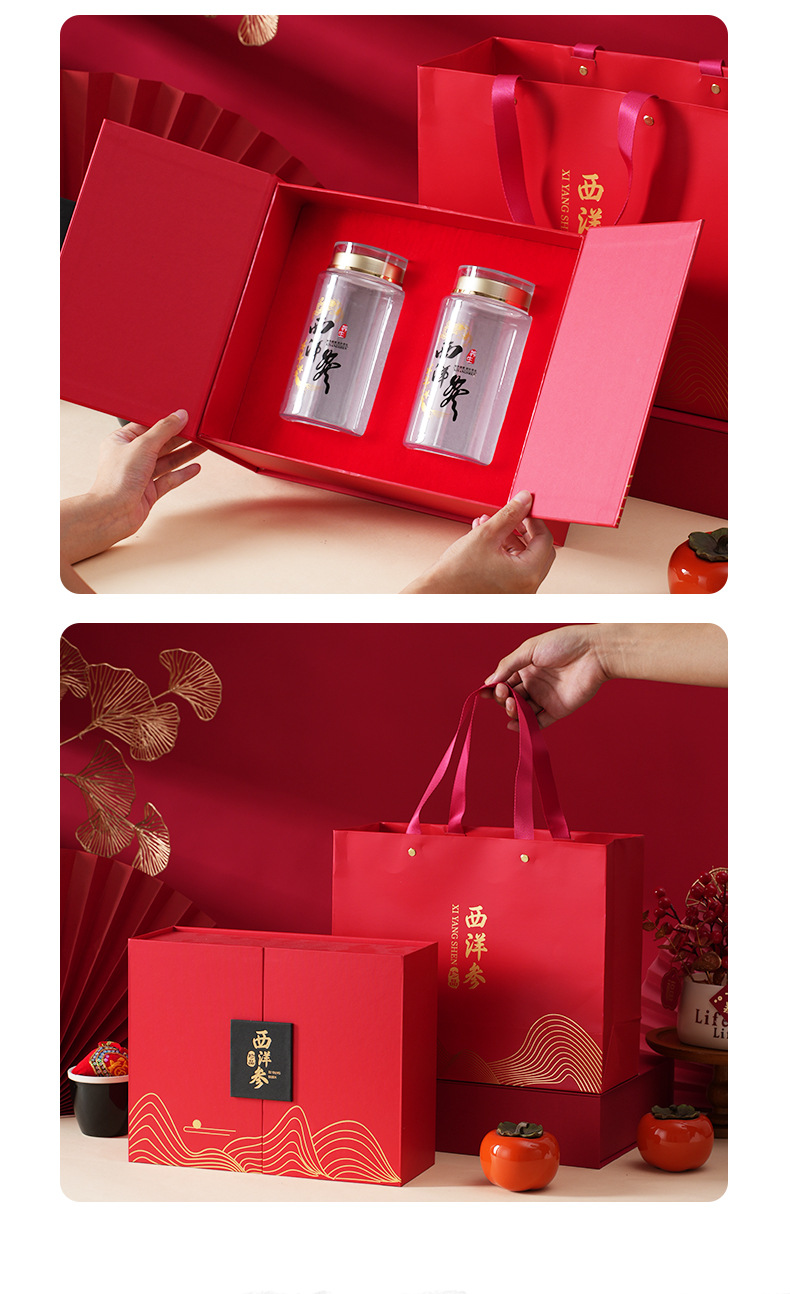 新款加拿大西洋参礼品包装盒100克200克250克双瓶三拼包装加印LG