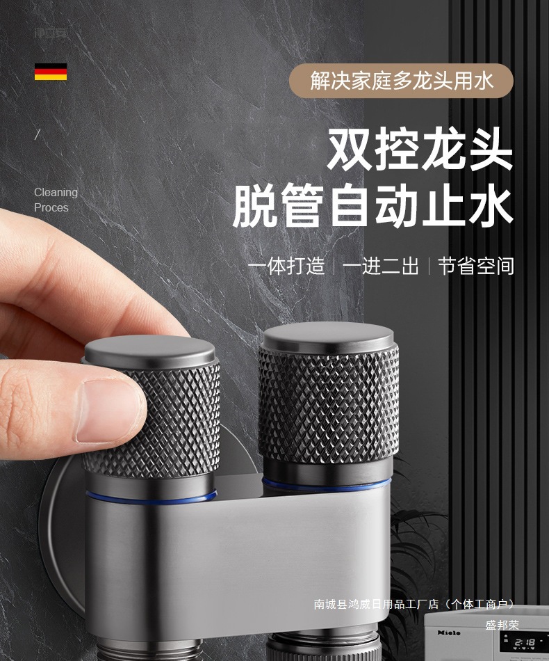 二出口ステンレス製アングルバルブ、家庭用洗濯機用蛇口、自動専用水栓、三方継手