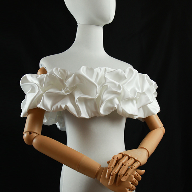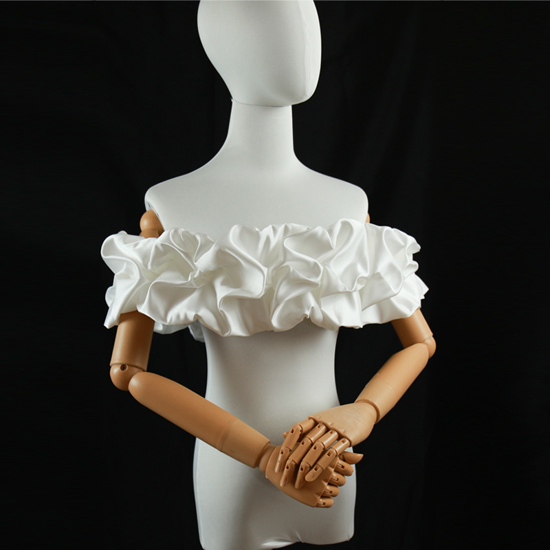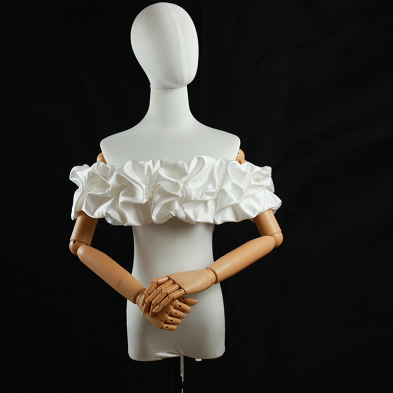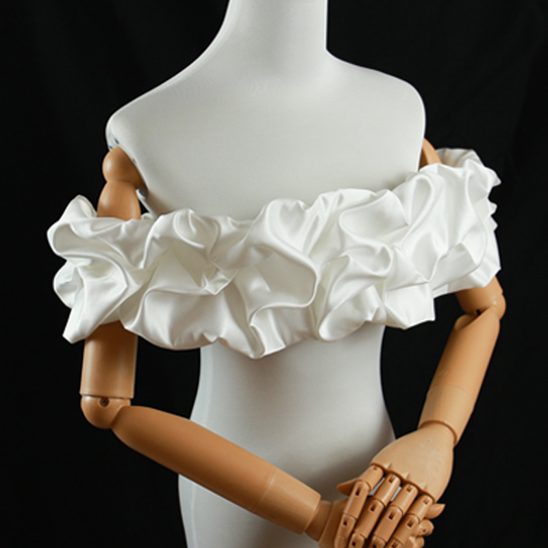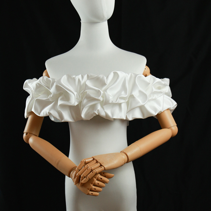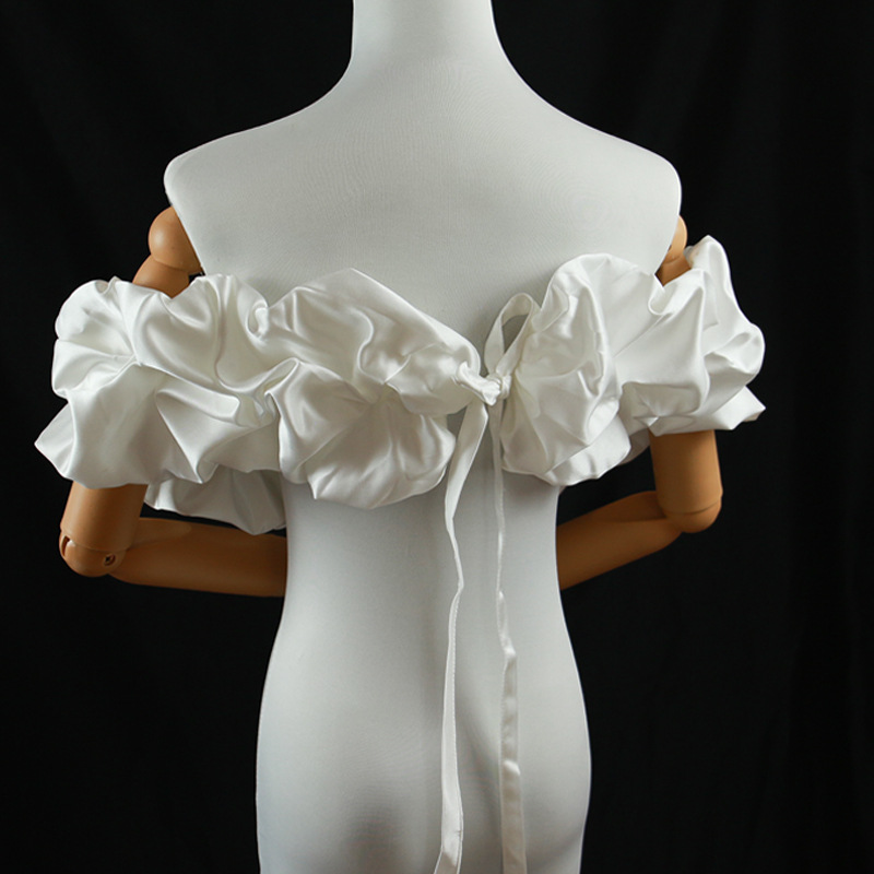 白色缎面肩饰一字肩披肩晚会礼服饰品婚纱拍照配饰演出服百搭简约