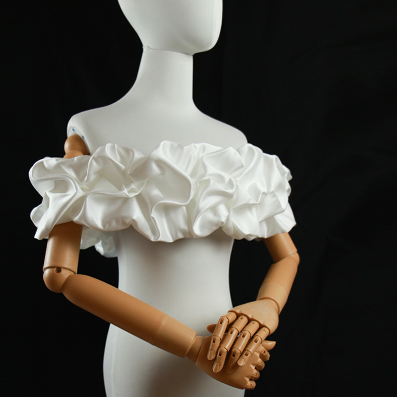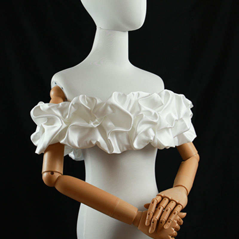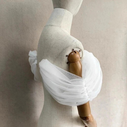 花嫁のウェディングドレスクラウドワンショルダーショールカバーアームバブルスリーブホワイトメッシュステージキャットウォークアクセサリー
