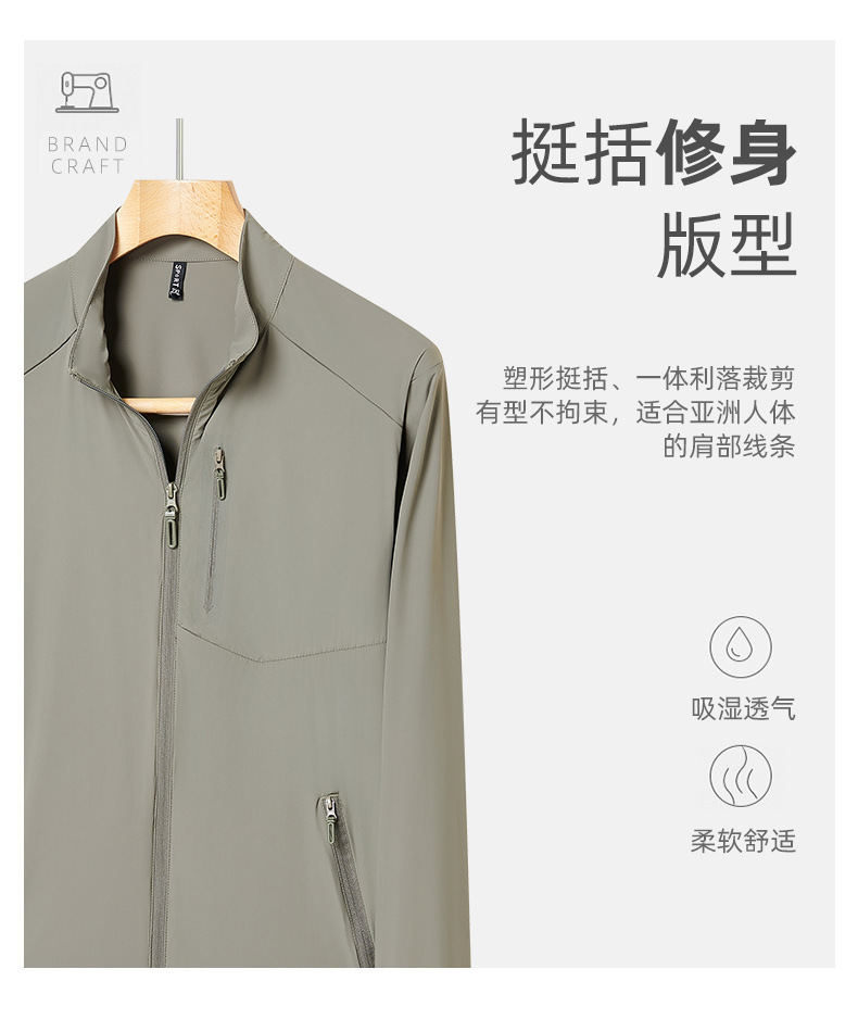 2025 春夏新作メンズ無地カジュアル薄いミルクシルク日焼け止め服マルチカラーオプション YB6601 ディープカーキ