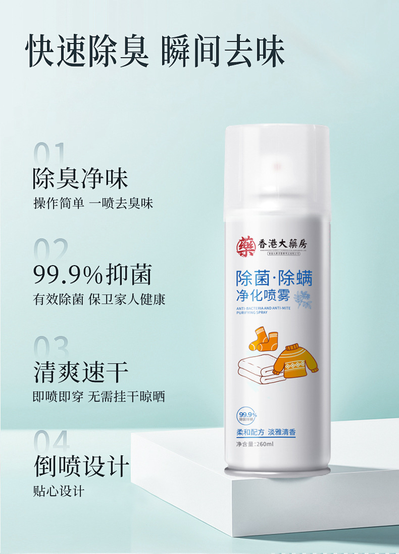 Dr. Shuomei の殺菌およびダニ除去冷浄スプレー、香りが長持ち、殺菌およびダニ除去、速乾性、洗浄不要の浄化スプレー