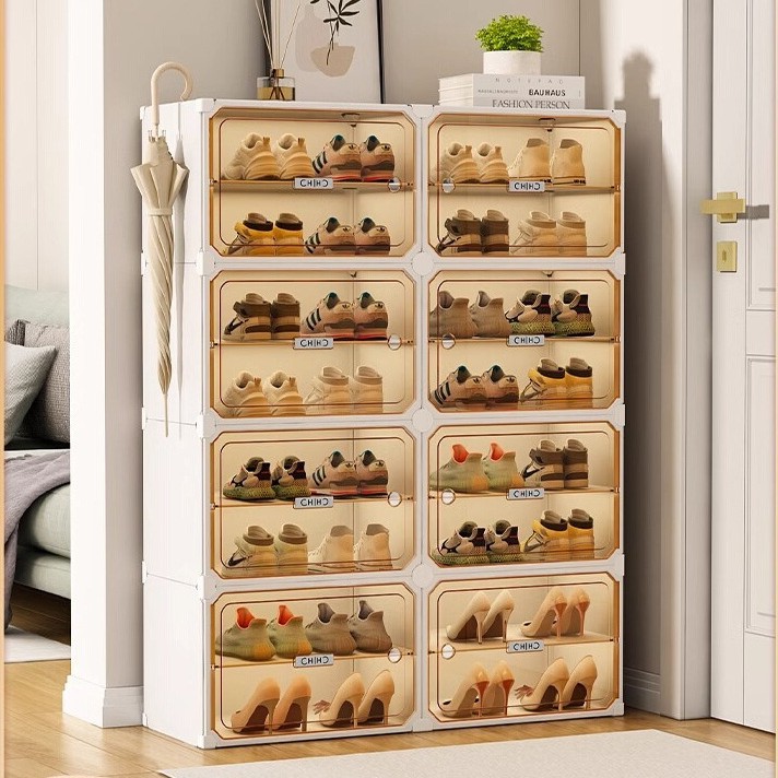 プラスチック簡易カバー式組み合わせ下駄箱家庭用寮磁気吸引収納箱非アクリル透明靴箱卸売り