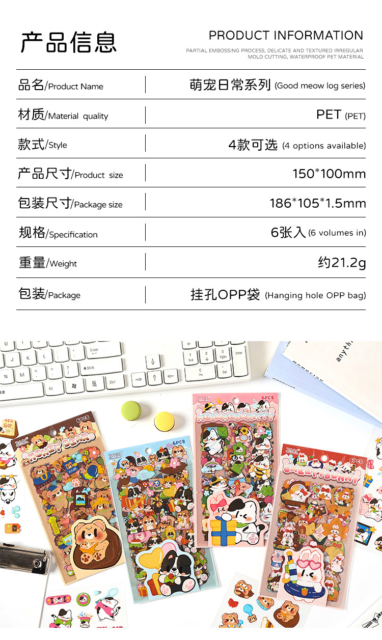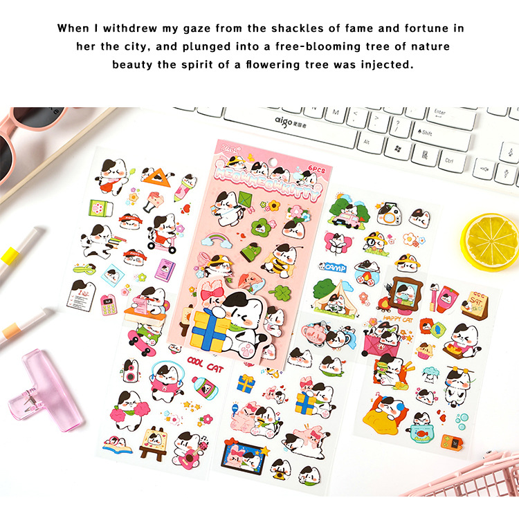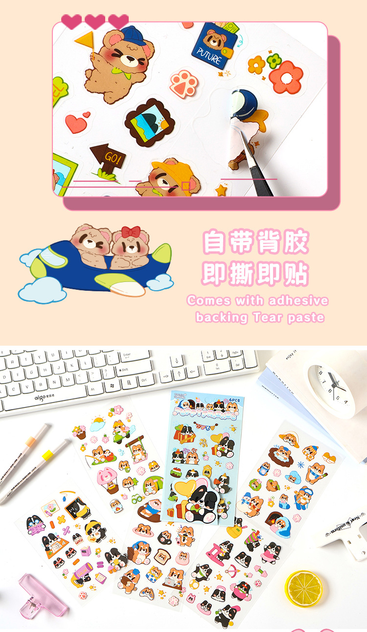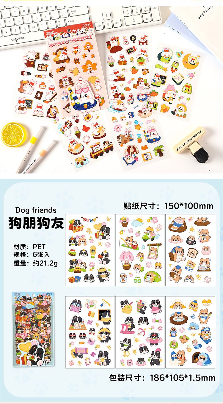 かわいいペットデイリー透明防水ペットステッカー diy ハンドブック日記ステッカークロスボーダー漫画動物文具ステッカー