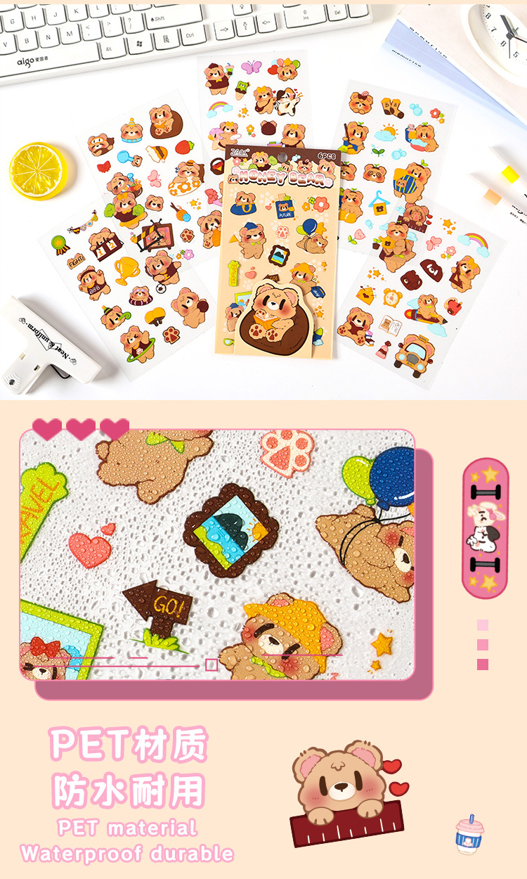 萌えかわいいシリーズ透明防水petシールdiy手帳日記装飾シールかわいい動物シール