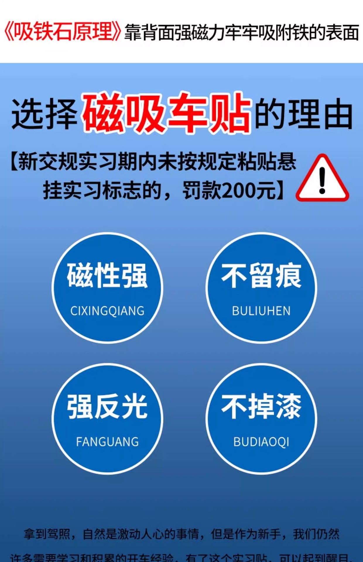初心者向けの実習用車のステッカー、道路の反射マグネット、車のステッカー、女性ドライバー向けのクリエイティブな実習用磁気サイン