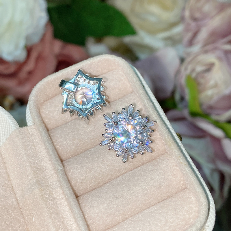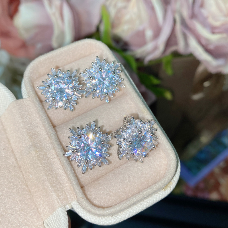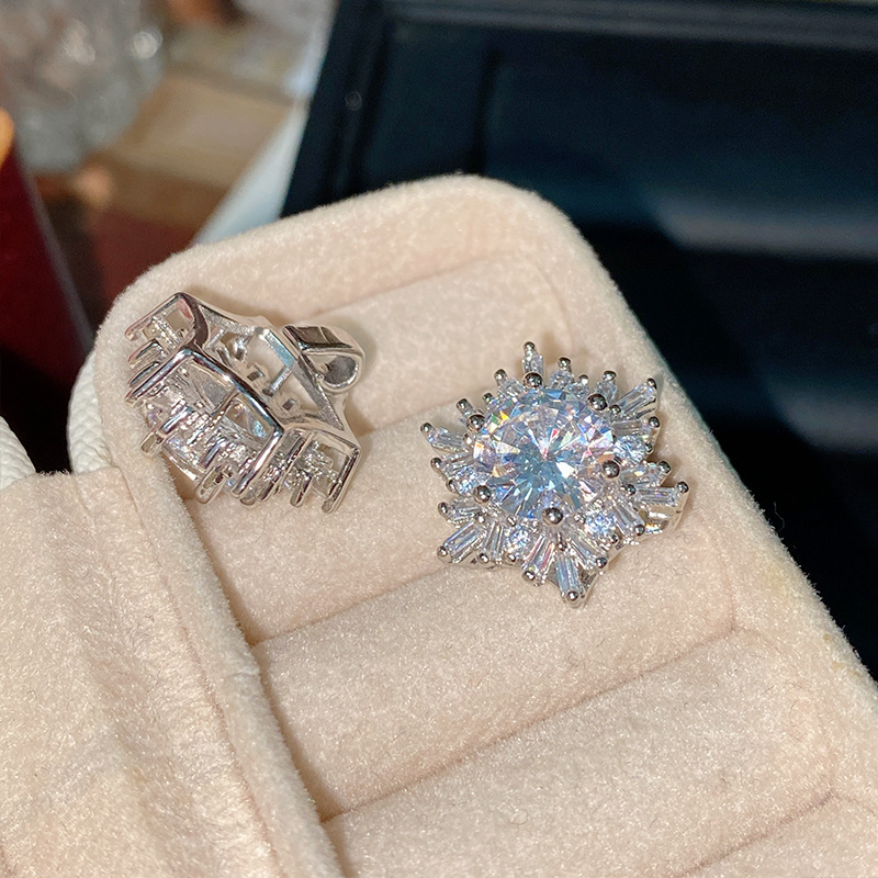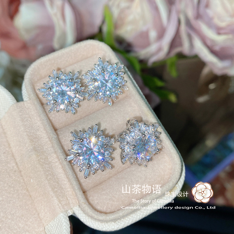 山茶轻奢珠宝维度设计花朵彩宝海蓝宝套装 璀璨满钻雏菊食指戒指