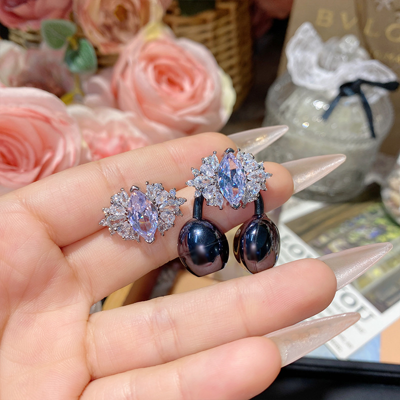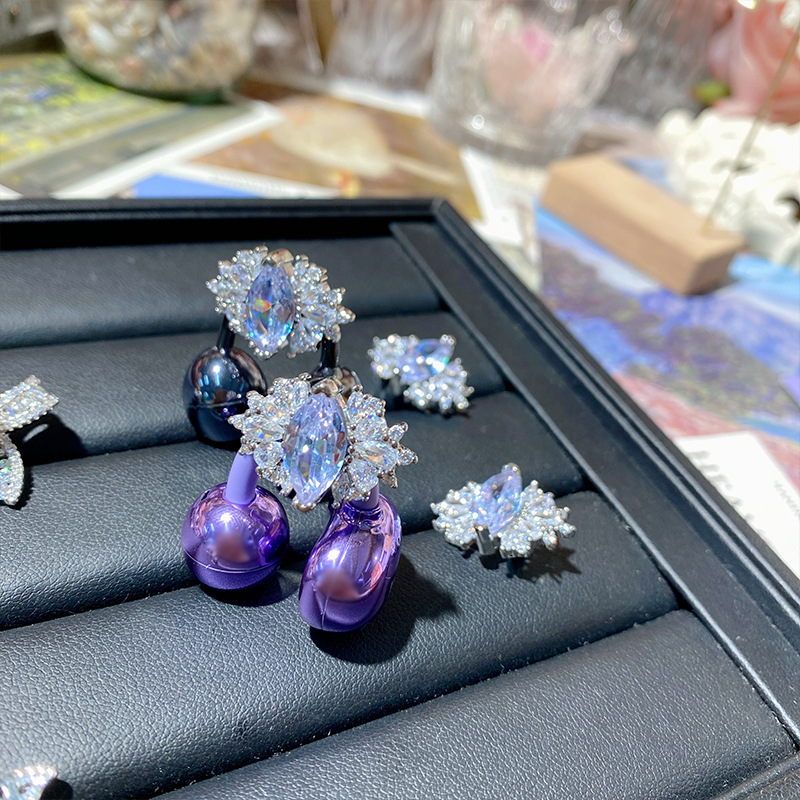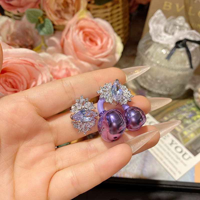 ツバキの新商品のきらきらと輝くブドウの紫のドリルのシリーズの宝石の金メッキのいっぱいのドリルの爆発の貴気の優雅で軽い豪華な指輪の女性