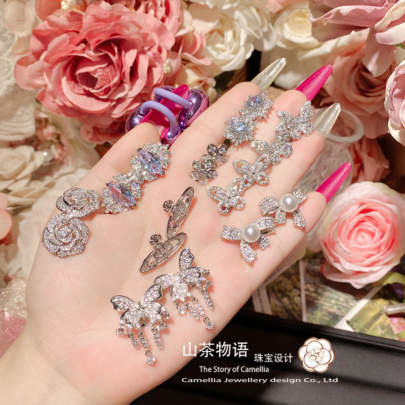 山茶原设新品灵动蝴蝶满钻耳机夹扣系列 精致百搭蓝牙耳机diy钻扣