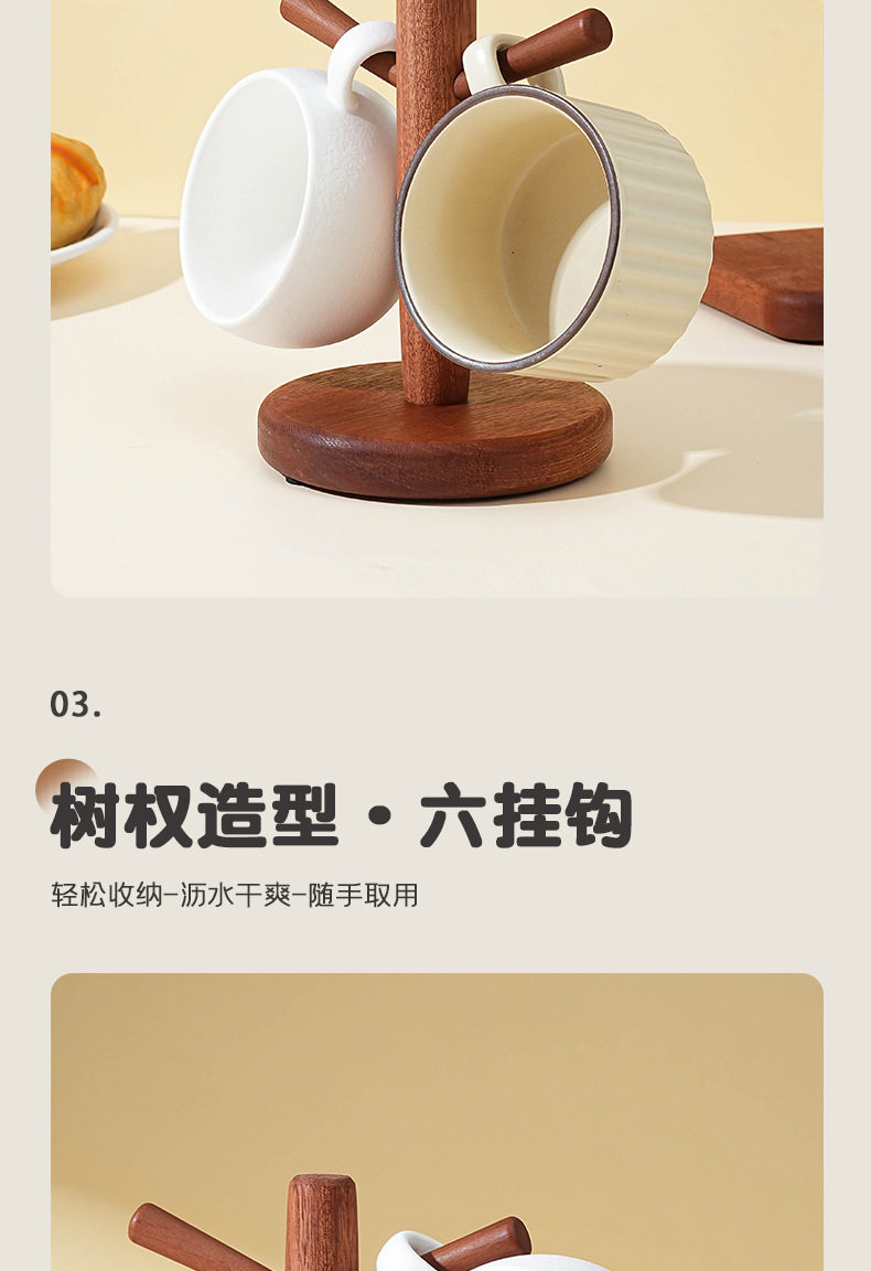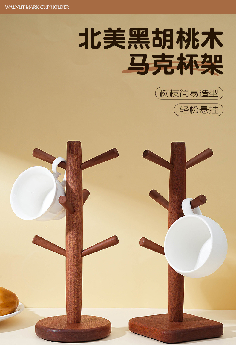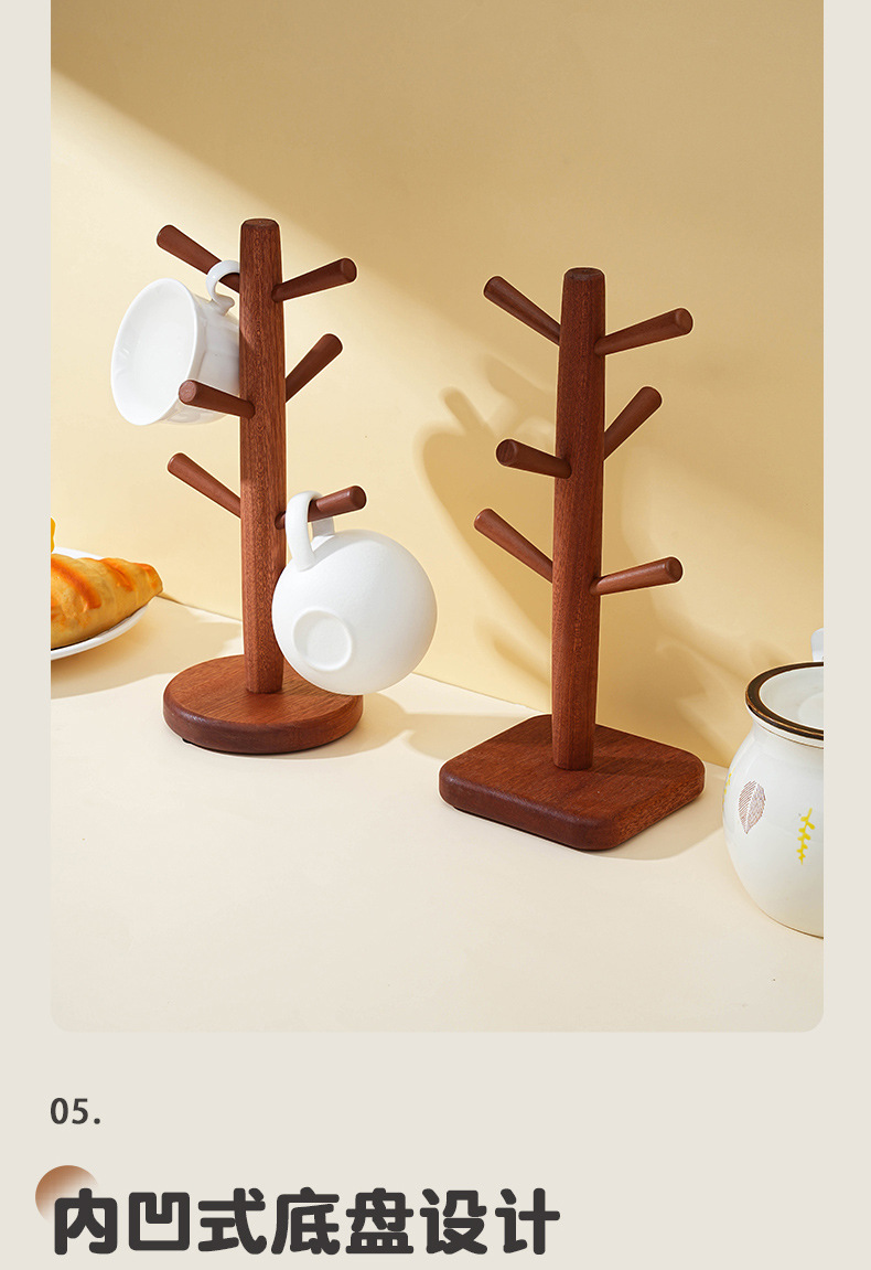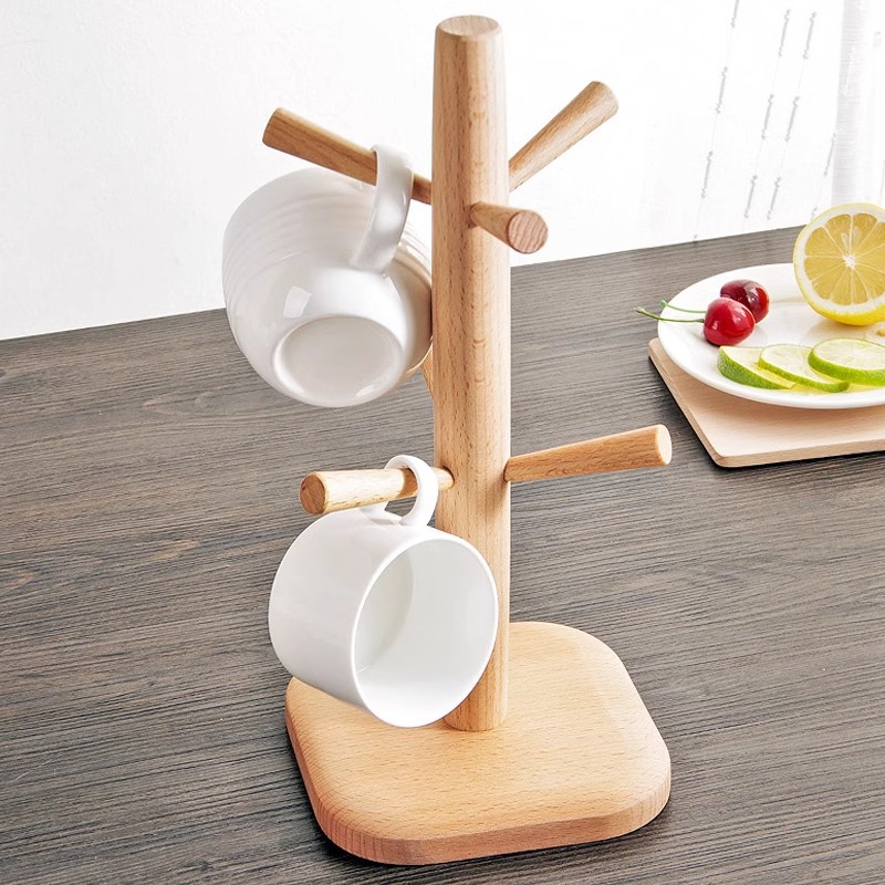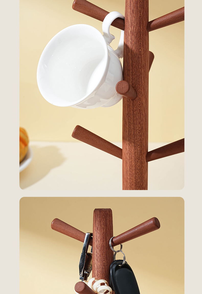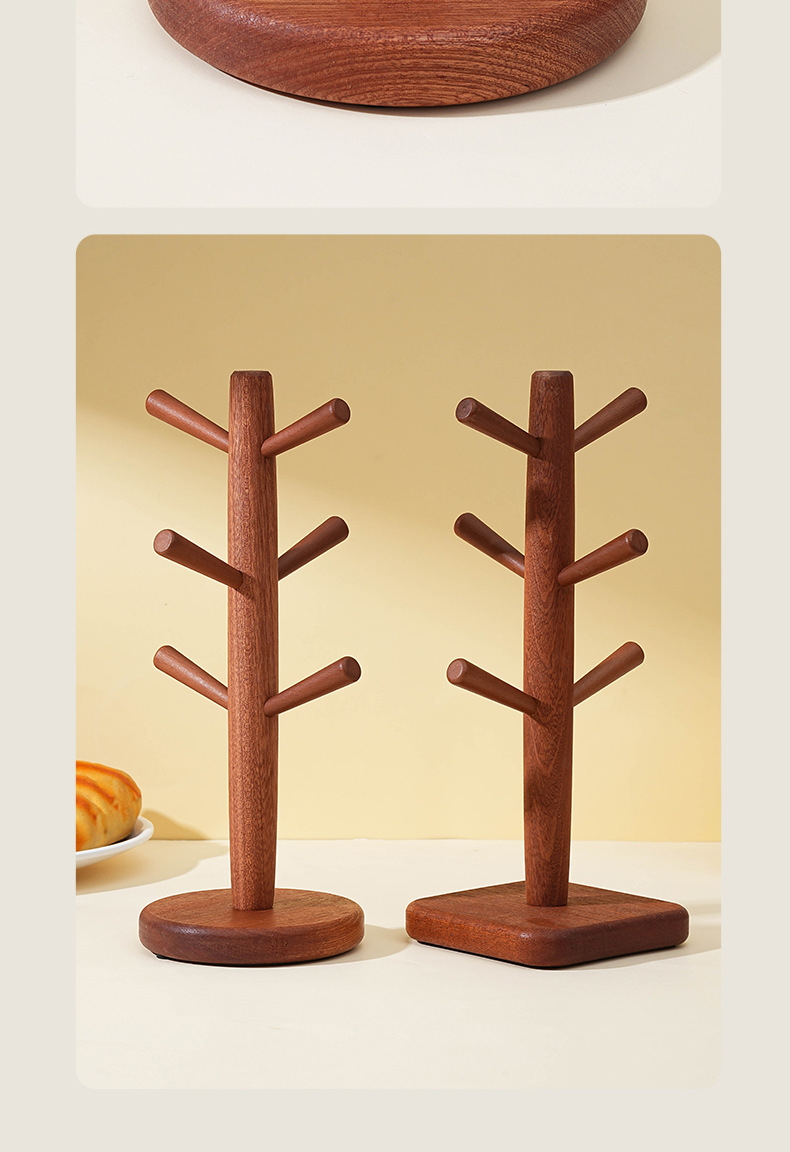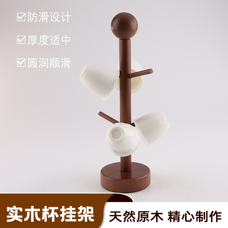 創意的な木製の杯棚のケヤキの木の杯棚のアクセサリー棚の巻き紙棚の六爪の収納棚のお茶の杯は水を切ってコップを支えます。
