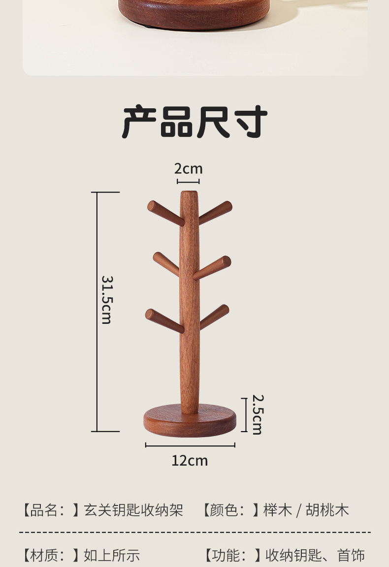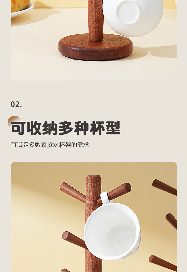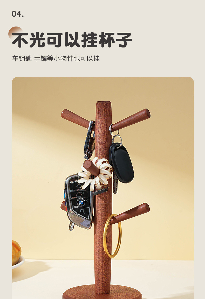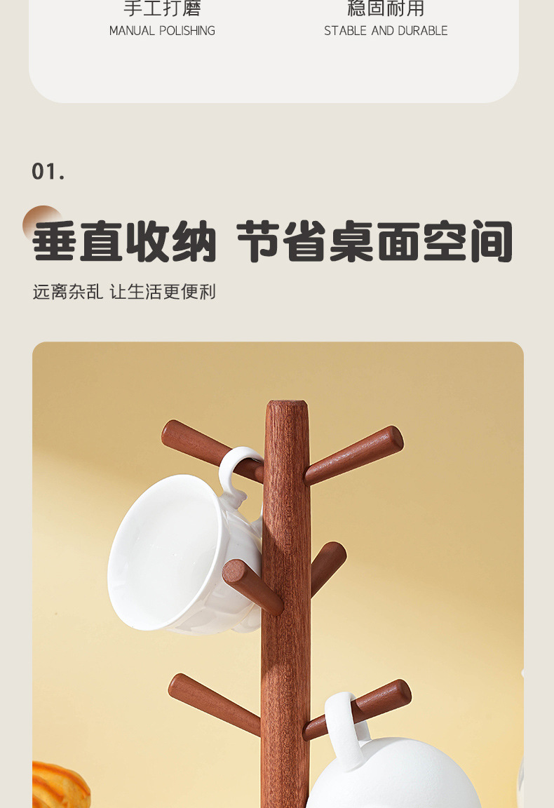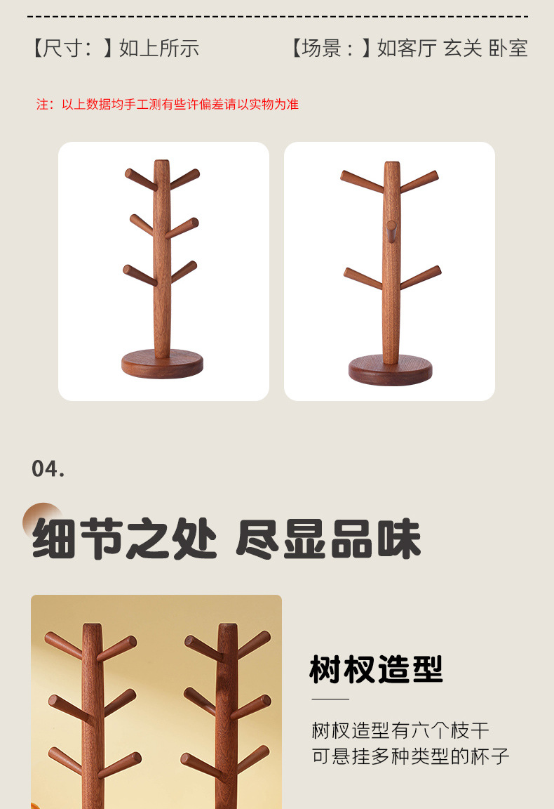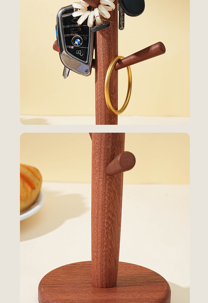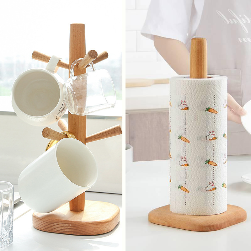 創意的な木製の杯棚のケヤキの木の杯棚のアクセサリー棚の巻き紙棚の六爪の収納棚のお茶の杯は水を切ってコップを支えます。