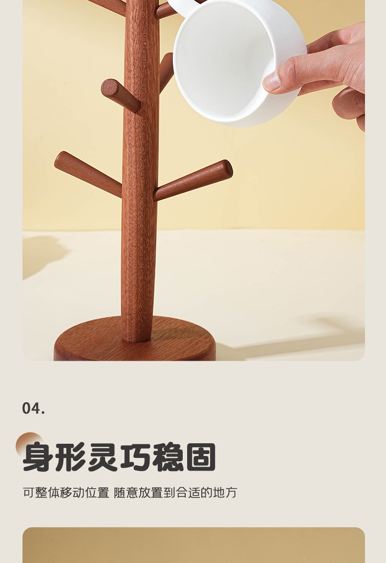 クロスボーダー新作竹製カップホルダー、Amazon人気のツリー型カップホルダー、キッチンカウンター用、穴あけ不要