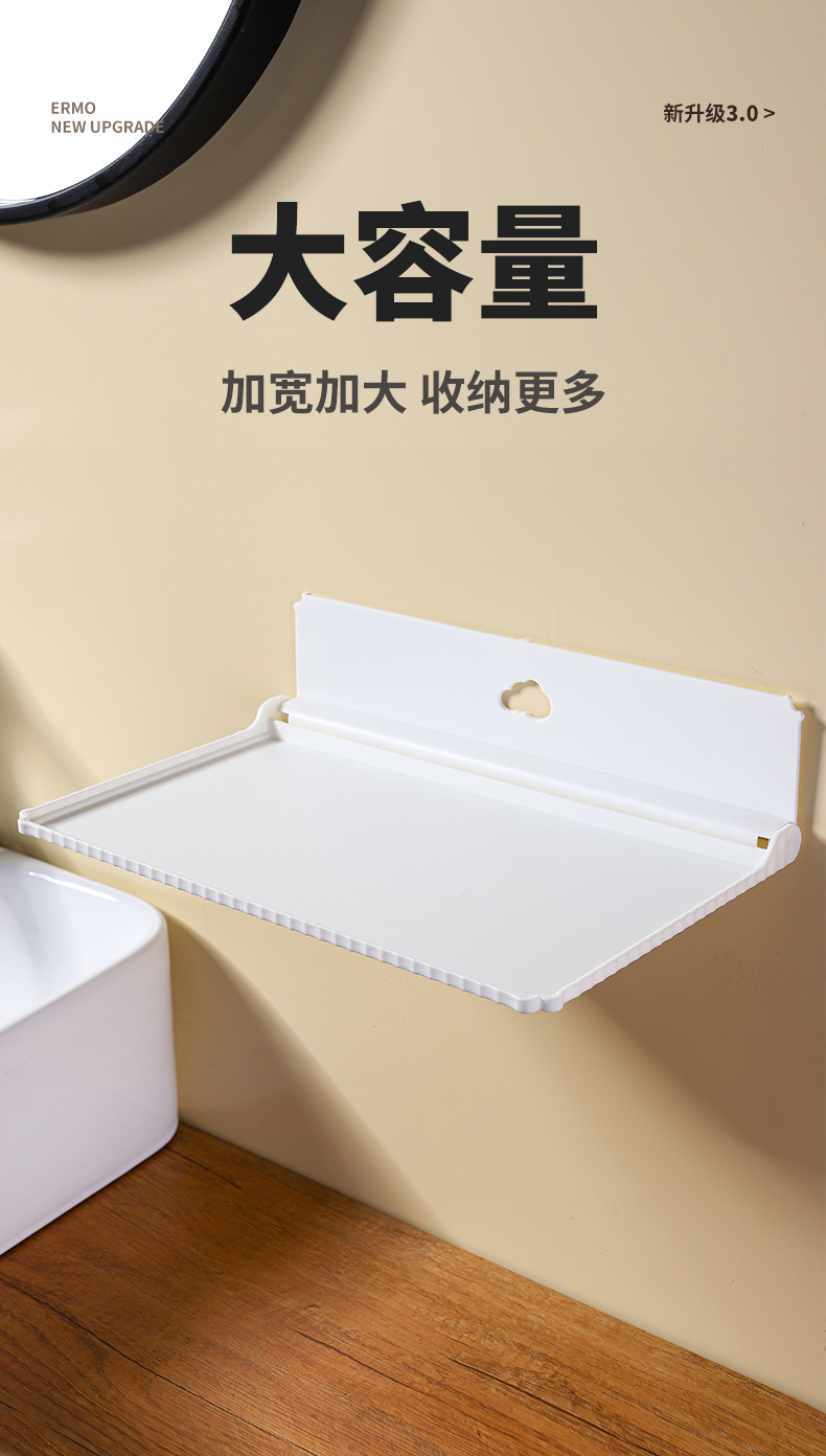 折り畳み可能な収納棚壁掛け折り畳み板浴室トイレのベッドの頭の携帯電話の穴を開けない壁の棚