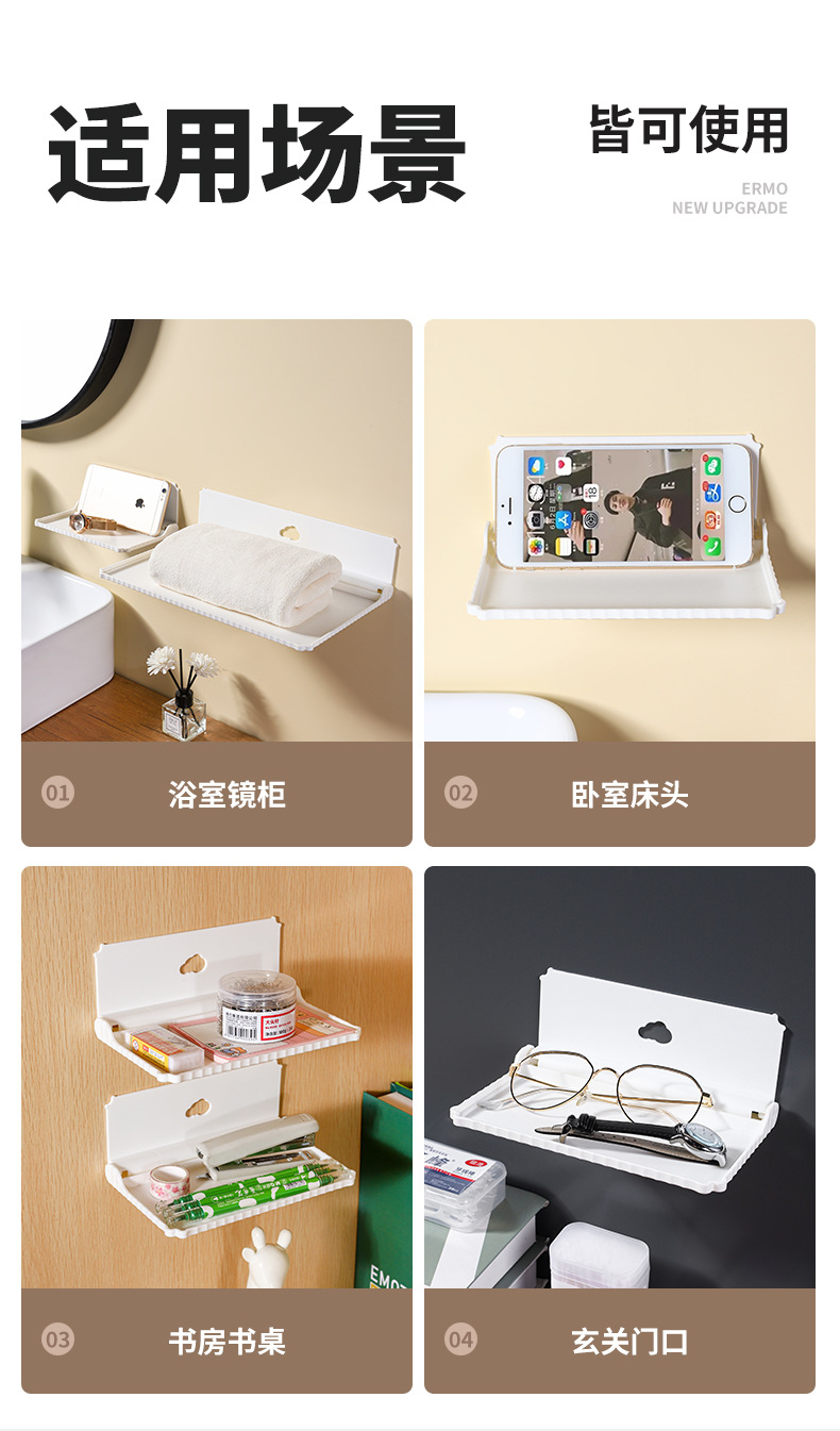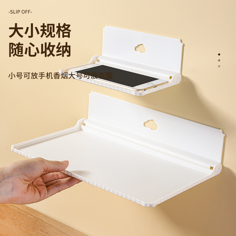 可折叠储物墙上置物架厕所床头手机免打孔收纳架机顶盒卫生间