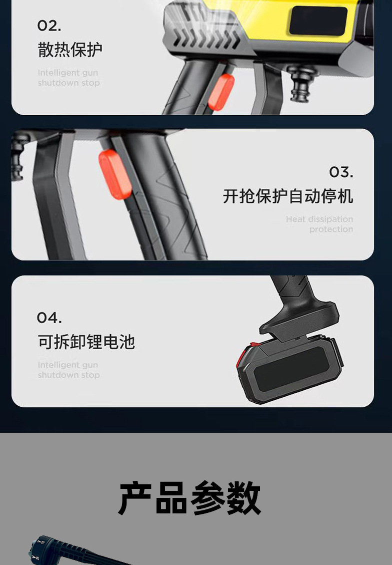 ホット販売高圧洗車水鉄砲家庭用洗車機充電式水鉄砲ポータブルハイパワーリチウム電池洗車ガン