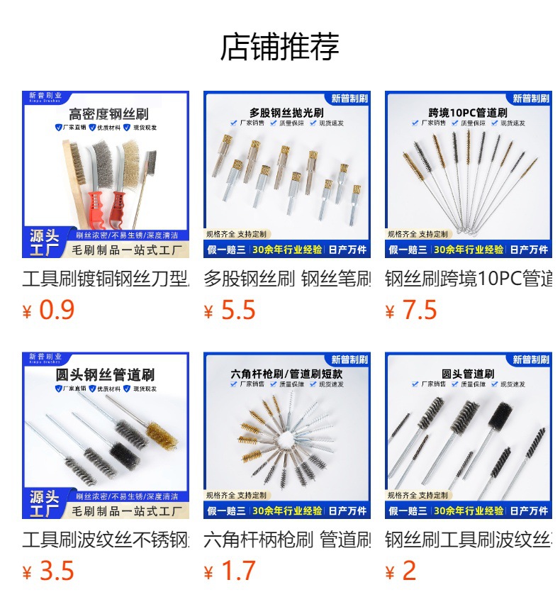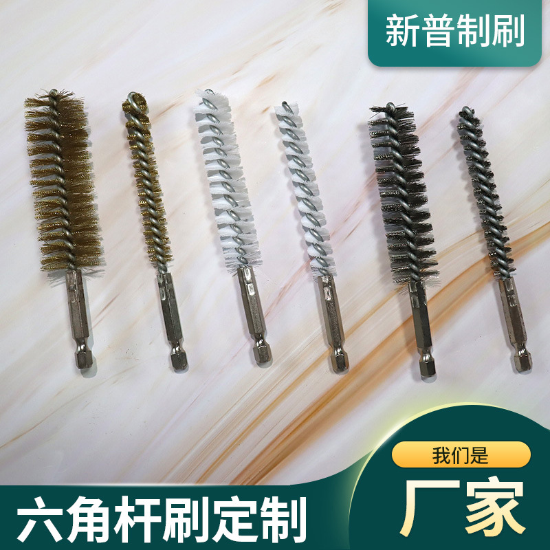 六角杆管道刷 1/4英寸短款工具刷内孔除锈去毛刺 枪刷套装 钢丝刷