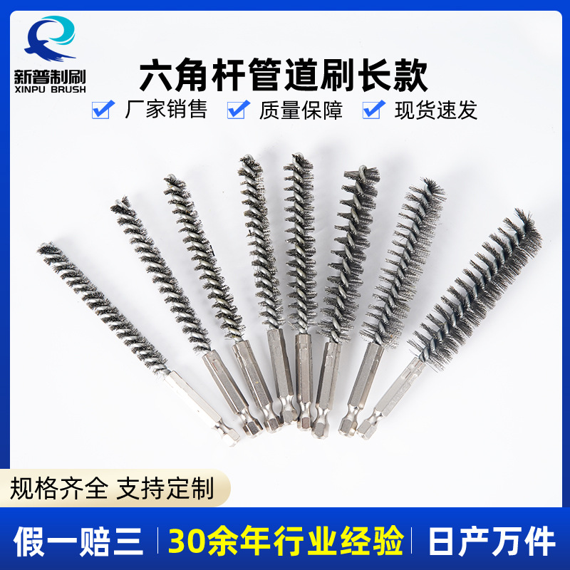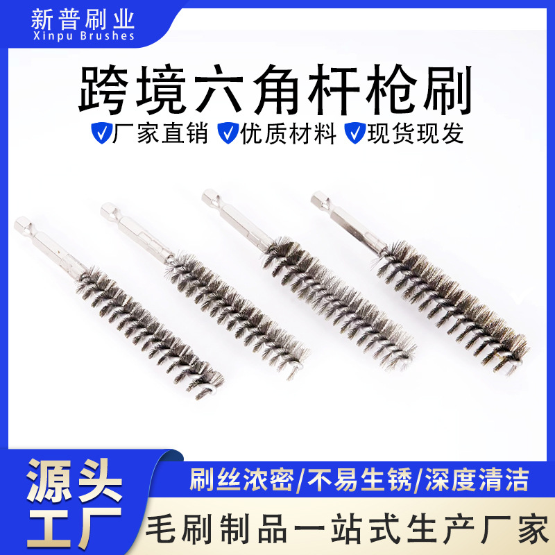 クロスボーダーロング六角ハンドルガンブラシセットパイプブラシ内穴研削錆除去およびフケ除去ステンレス鋼線内穴ブラシ