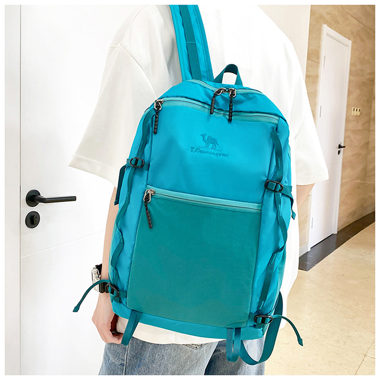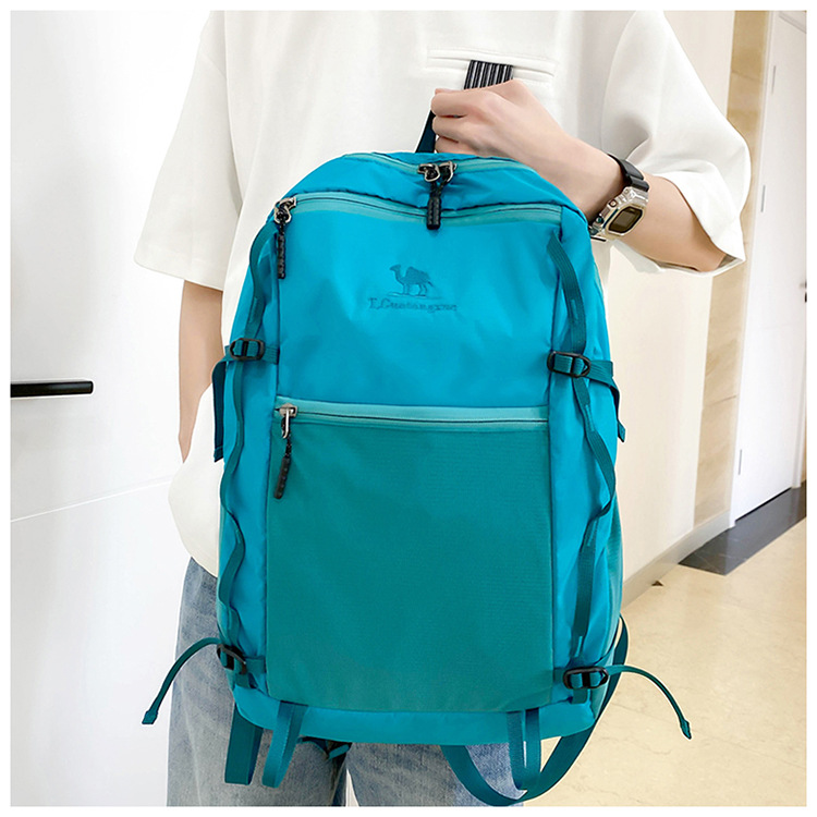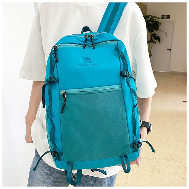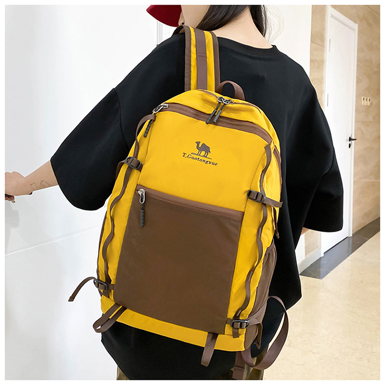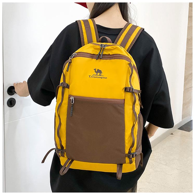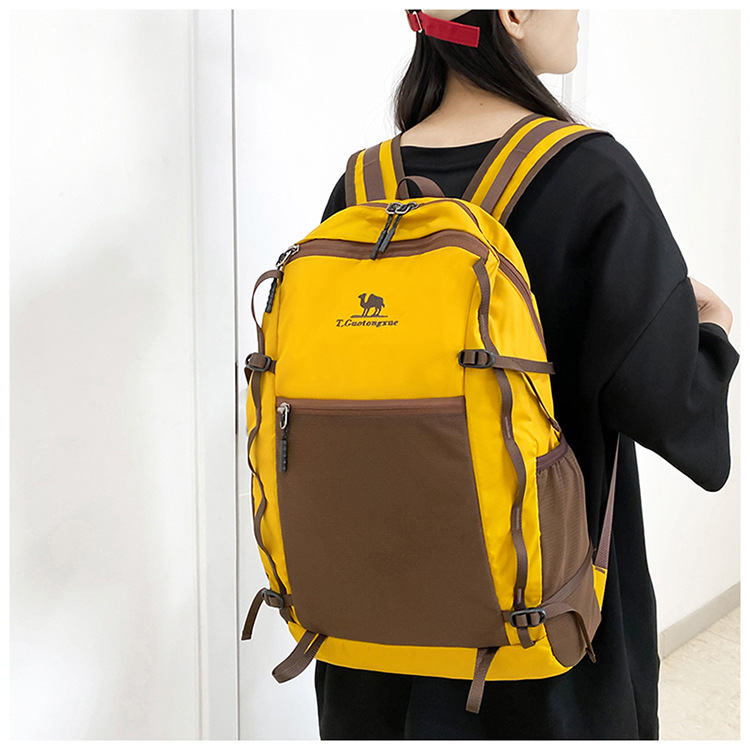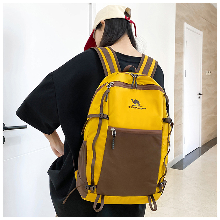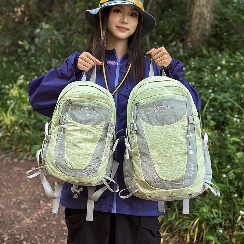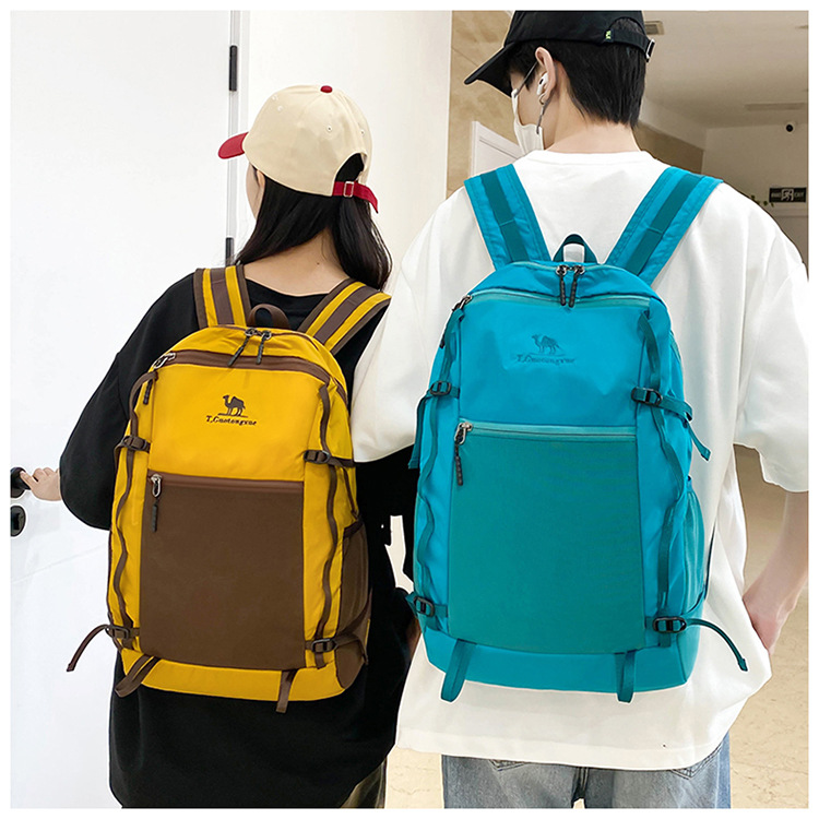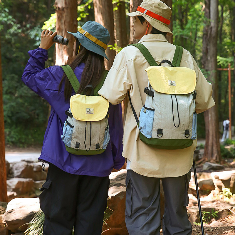 户外运动徒步登山包新款撞色拼接挂绳背包大容量百搭休闲双肩包