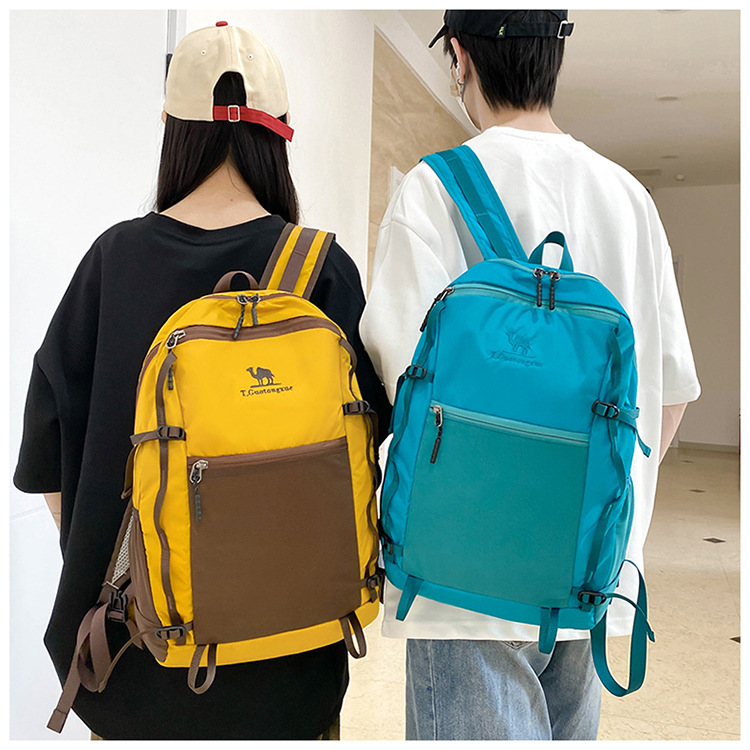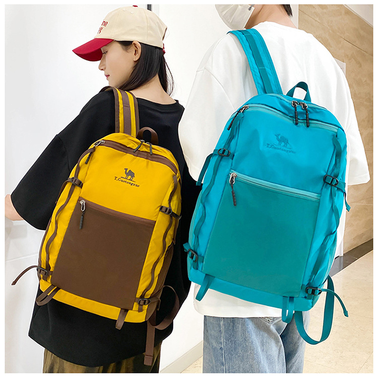 日系休闲男女同款双肩包撞色百搭潮流旅行背包轻便户外徒步登山包