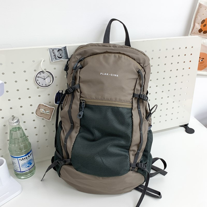 2025韩系机能风男女多功能大容量户外登山包旅行网眼抽绳双肩背包