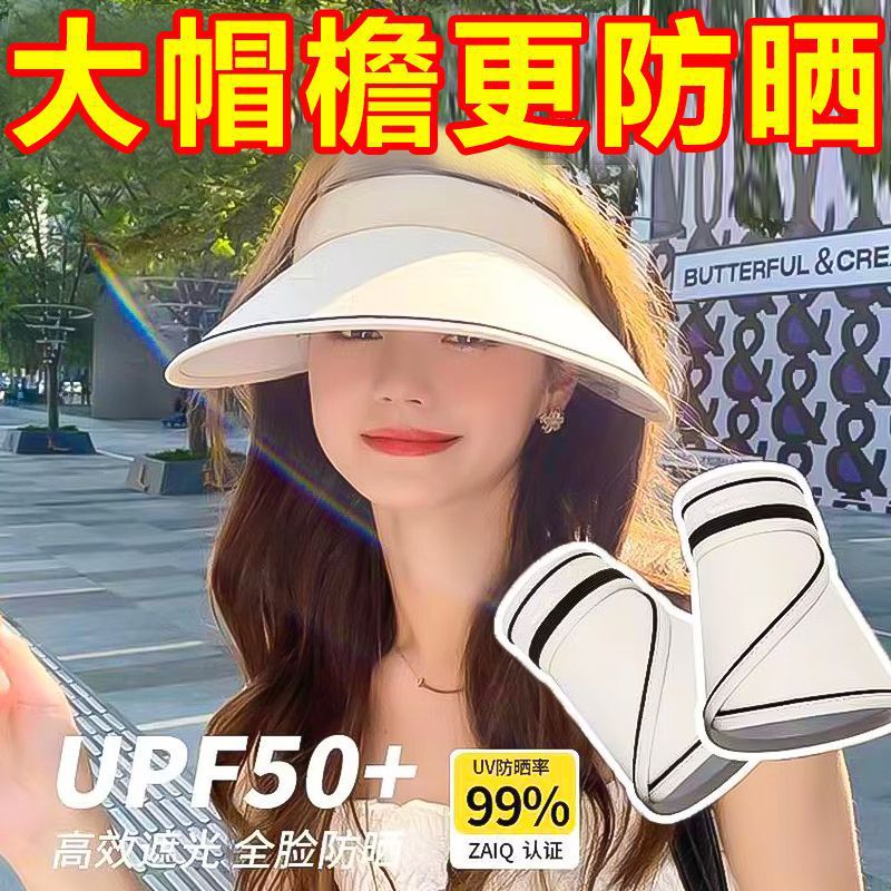UPF50+夏季大帽檐防晒帽女防紫外线空顶遮阳帽子logo骑车遮太阳帽