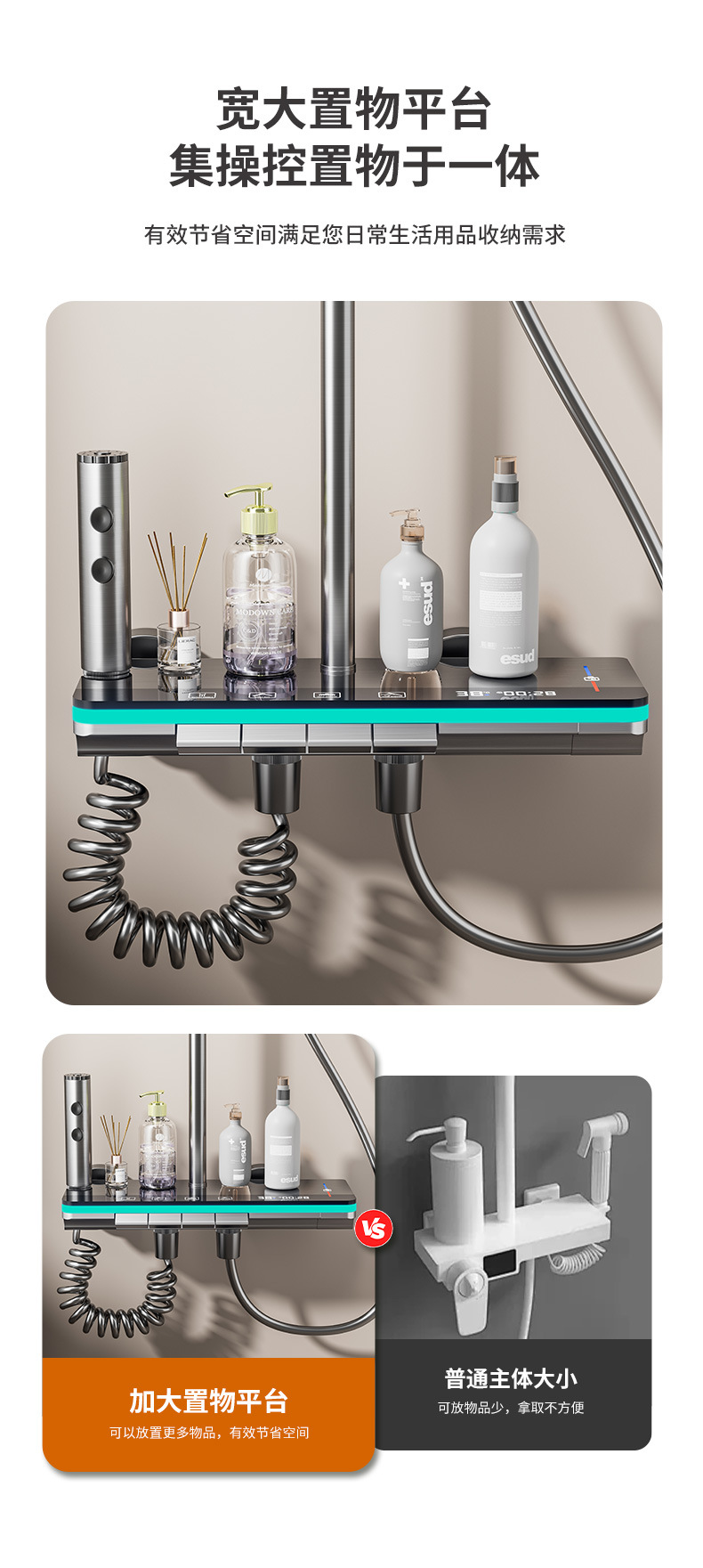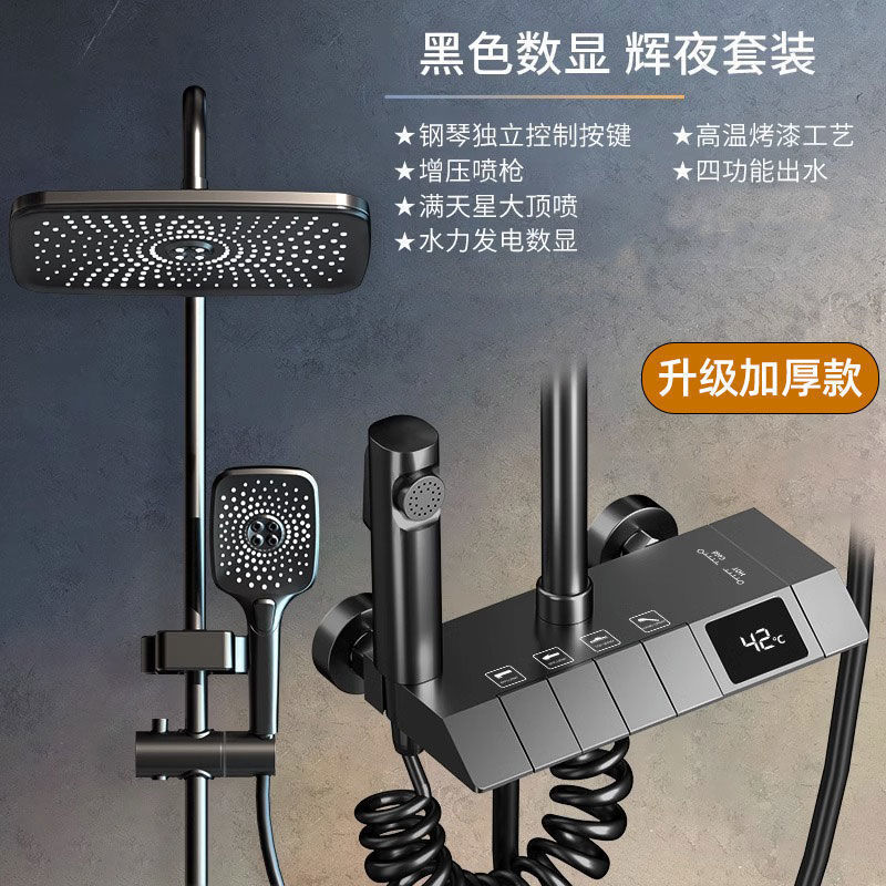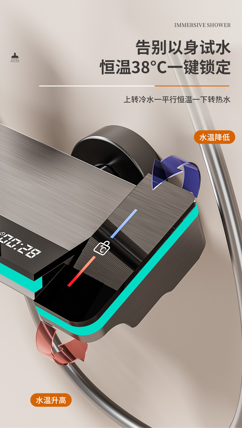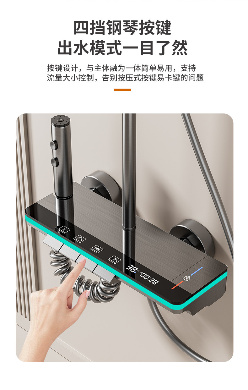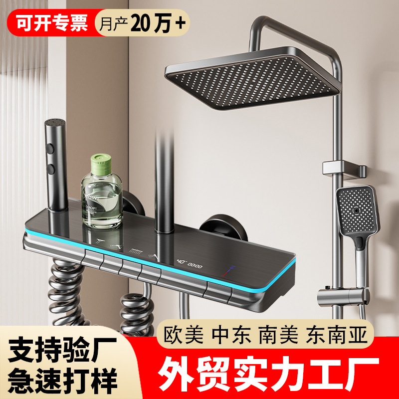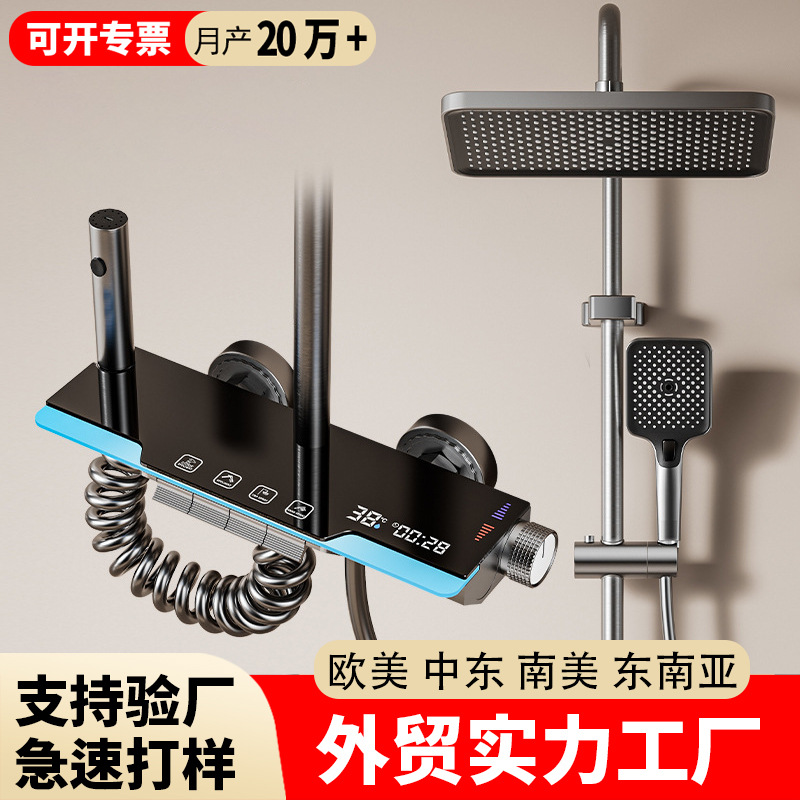 跨境全铜淋浴器花洒套装恒温家用智能数显淋浴琴键花洒全套一整套