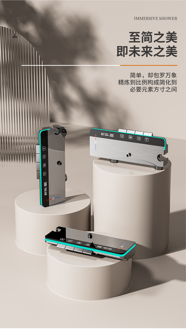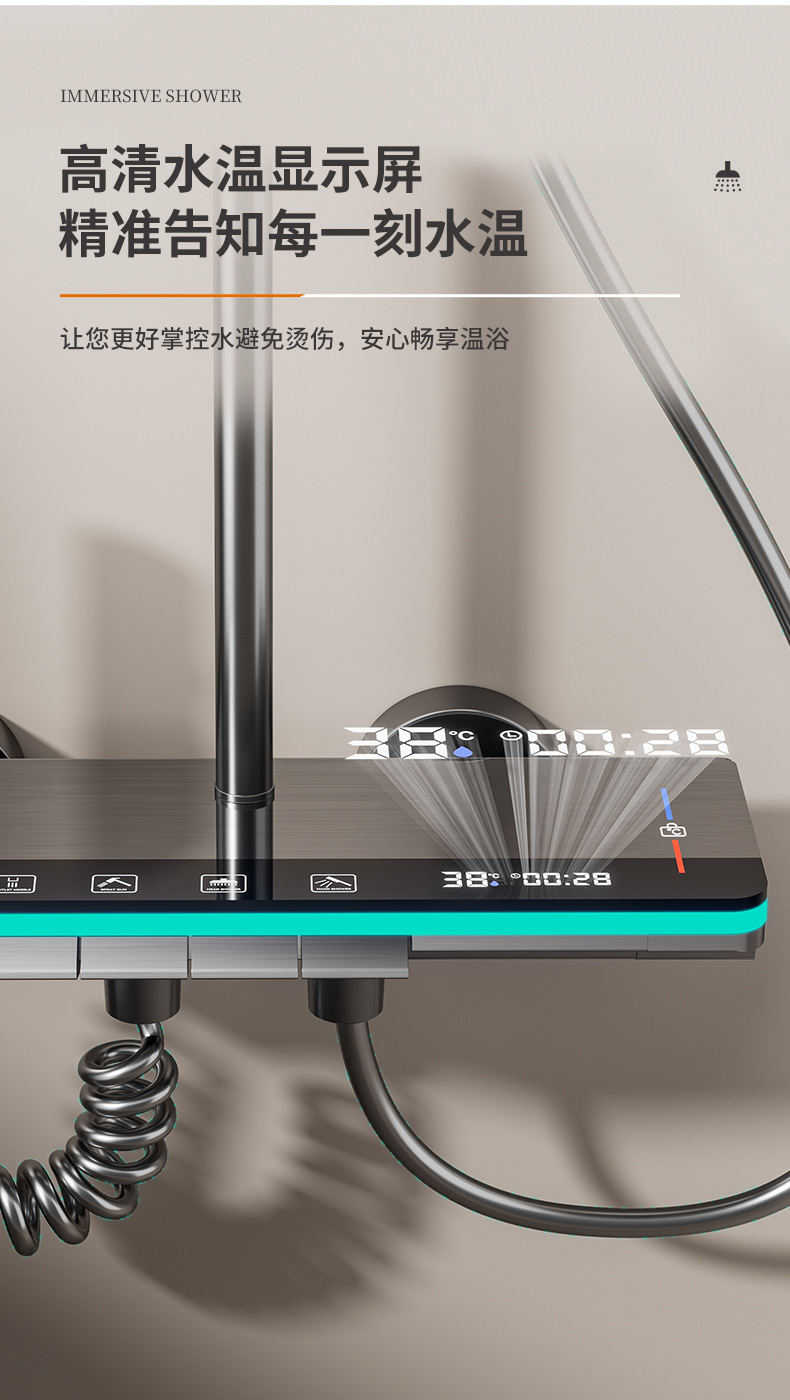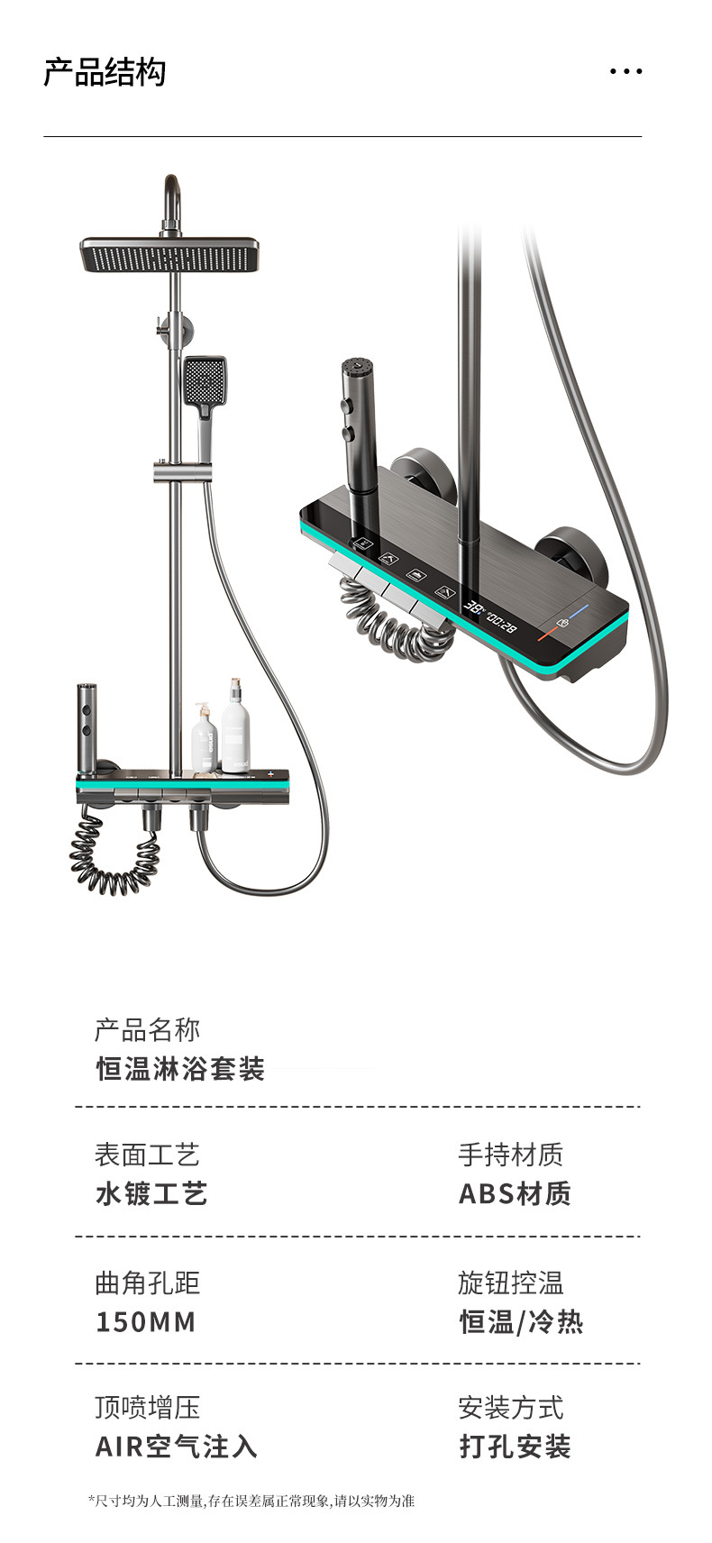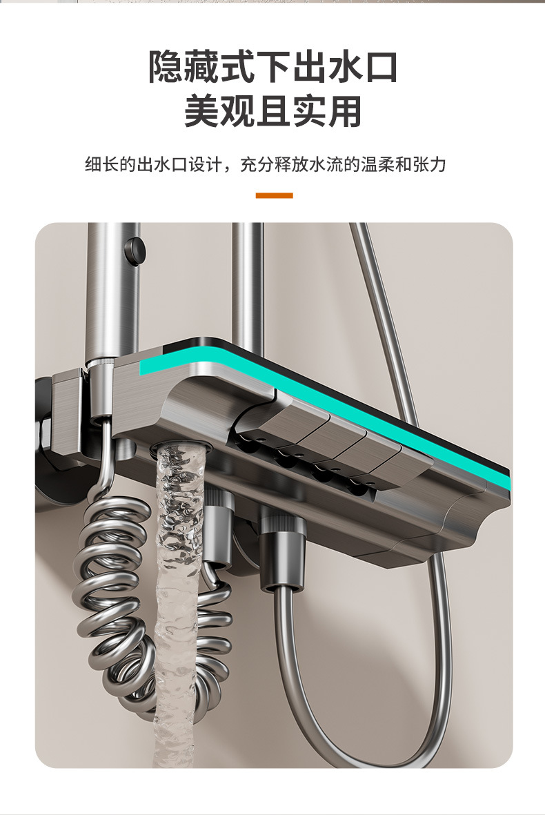 跨境全铜淋浴器花洒套装恒温家用智能数显淋浴琴键花洒全套一整套