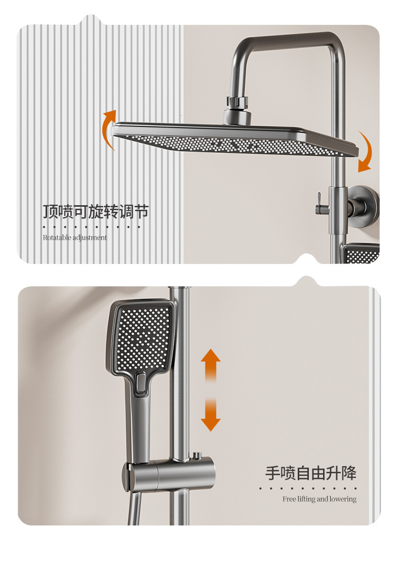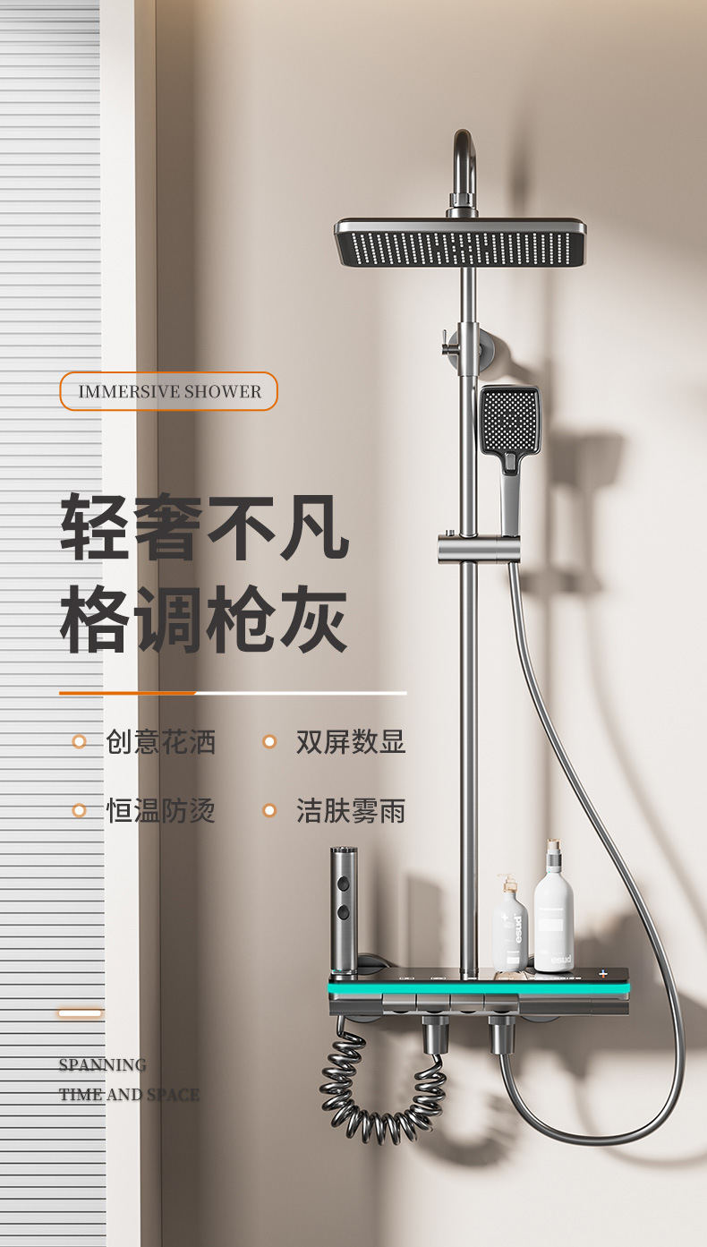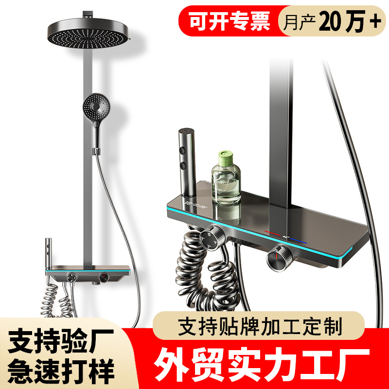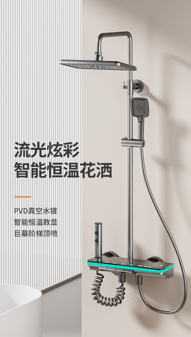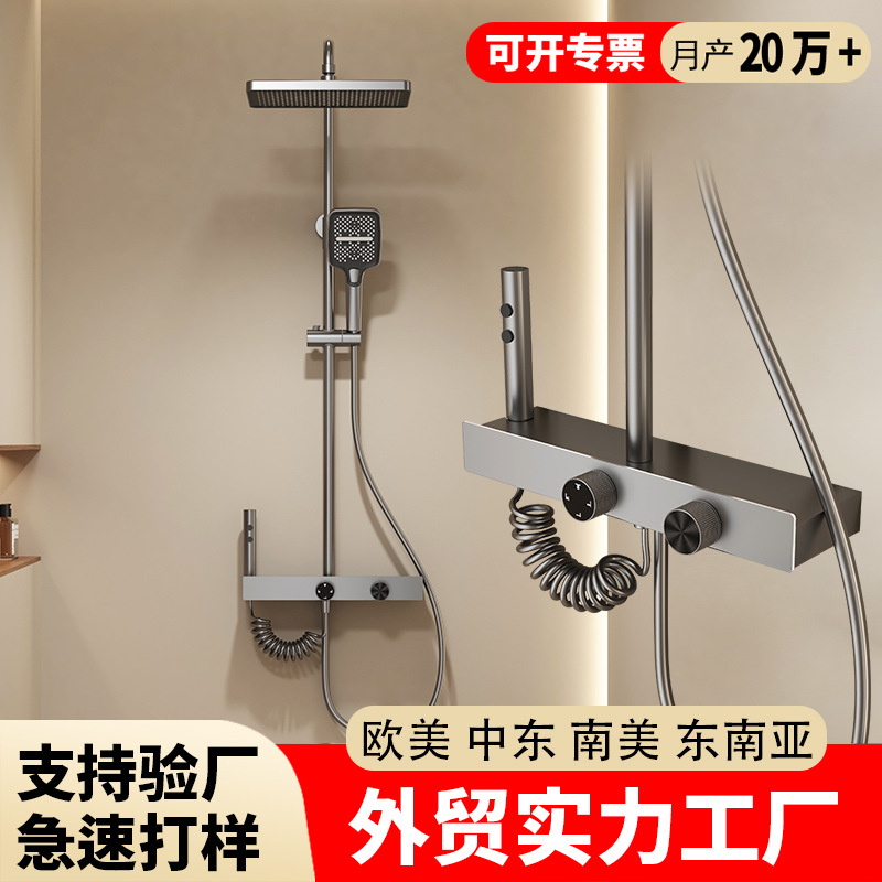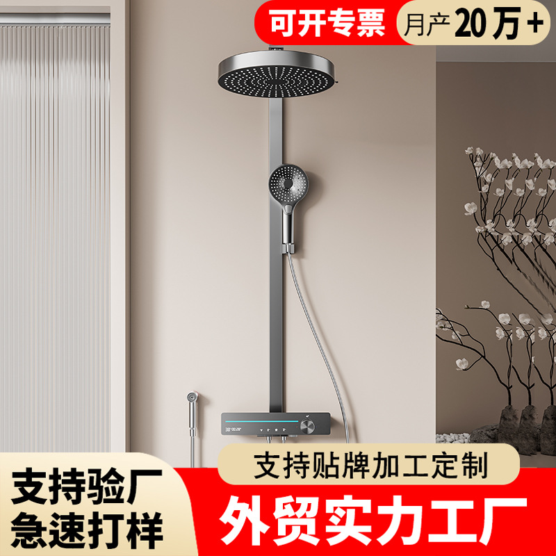 厂家批发枪灰色淋浴花洒套装淋浴器家用智能恒温增压浴室沐浴喷头