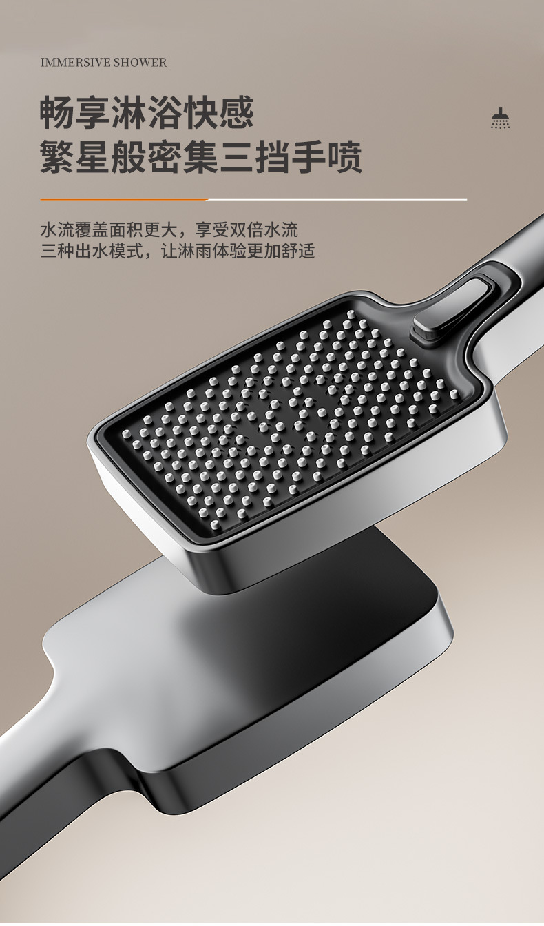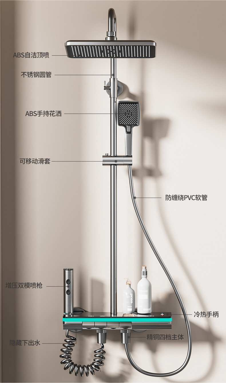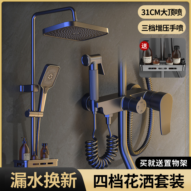 枪灰色新款黄铜置物架淋浴花洒套装 旋钮冷热简装花洒套装多功能