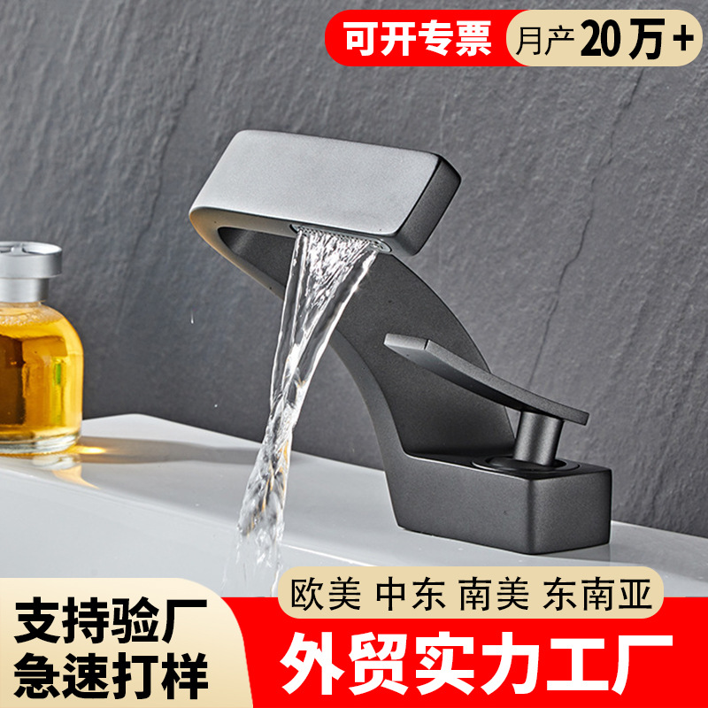 ウォーターフォール蛇口ライト高級全銅製温冷浴室トイレ手洗い洗面台単穴ブラッシュゴールド