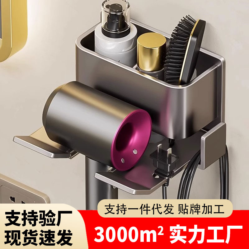 パンチングなしのヘアドライヤー収納ラック、バスルーム壁掛けヘアドライヤーホルダー、バスルーム壁掛け歯ブラシ収納ラック