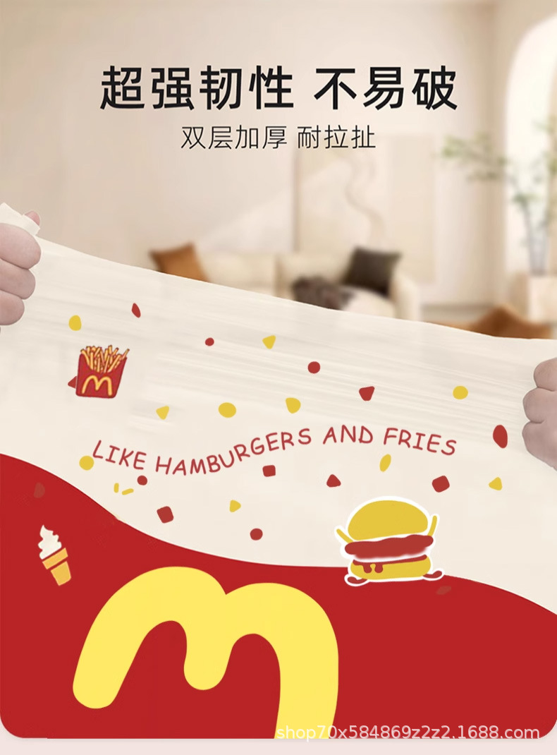 免撕麦当劳卡通高颜值家用厨房手提式加厚垃圾袋印花100支