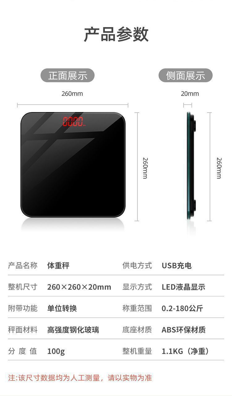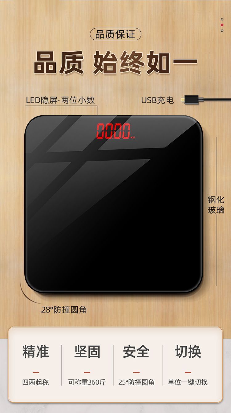 起爆LED人体秤隠れスクリーン体重秤卸売り人体重量秤健康秤グラデーションオプション充電