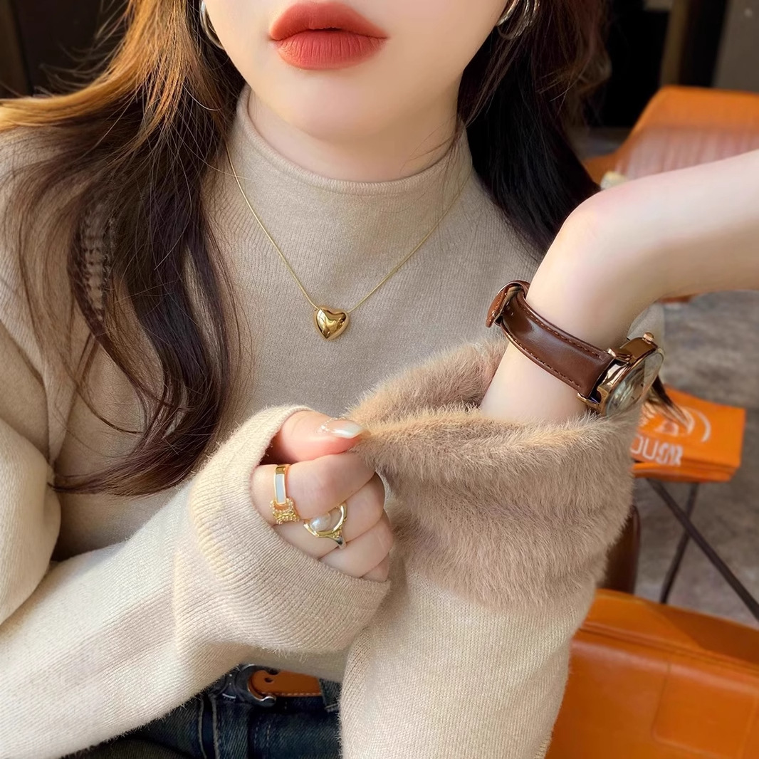 女性用ブラックタートルネックセーター、2025年秋冬新作暖かいミンクオールインワンベルベットプラスベルベット厚みのある女性用ボトリングシャツ