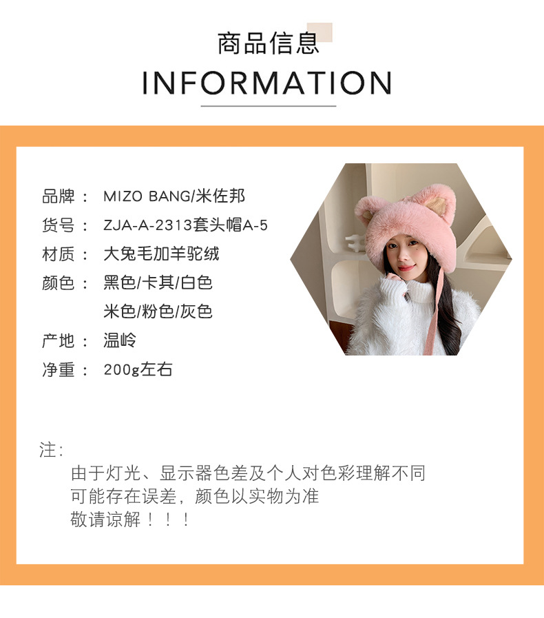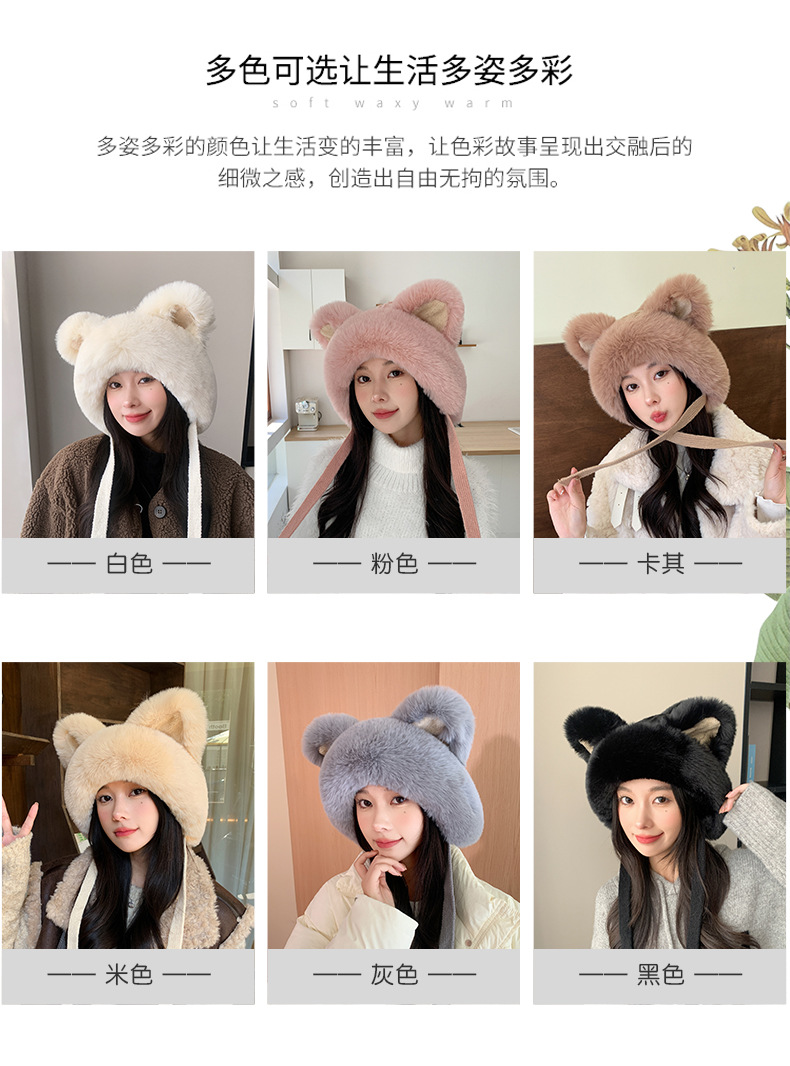 秋冬季新款卡通耳朵显脸小针织套头帽子女户外旅游保暖毛线雷锋帽
