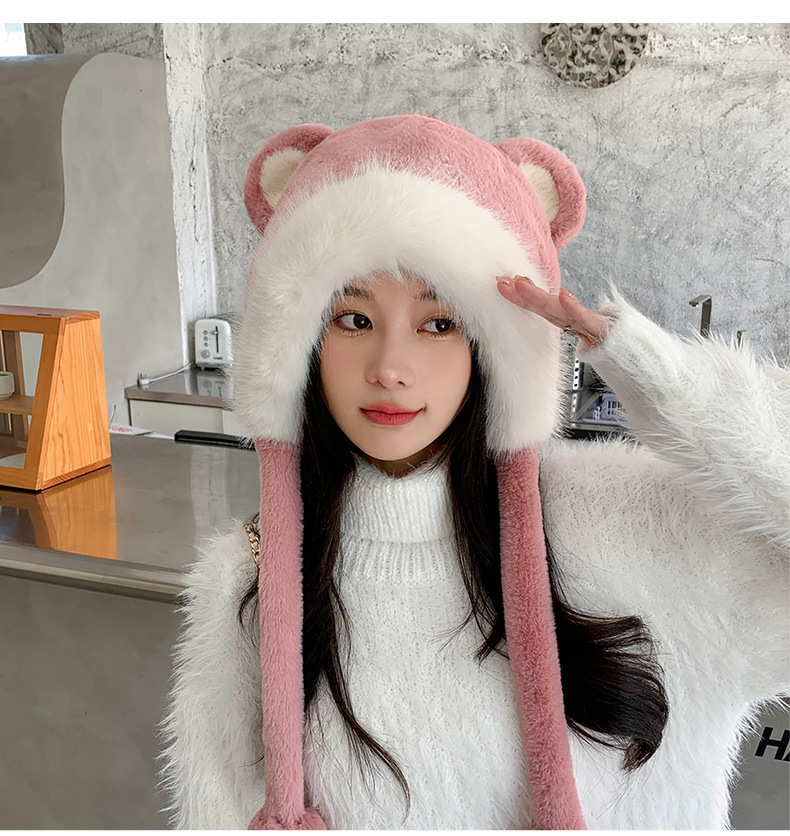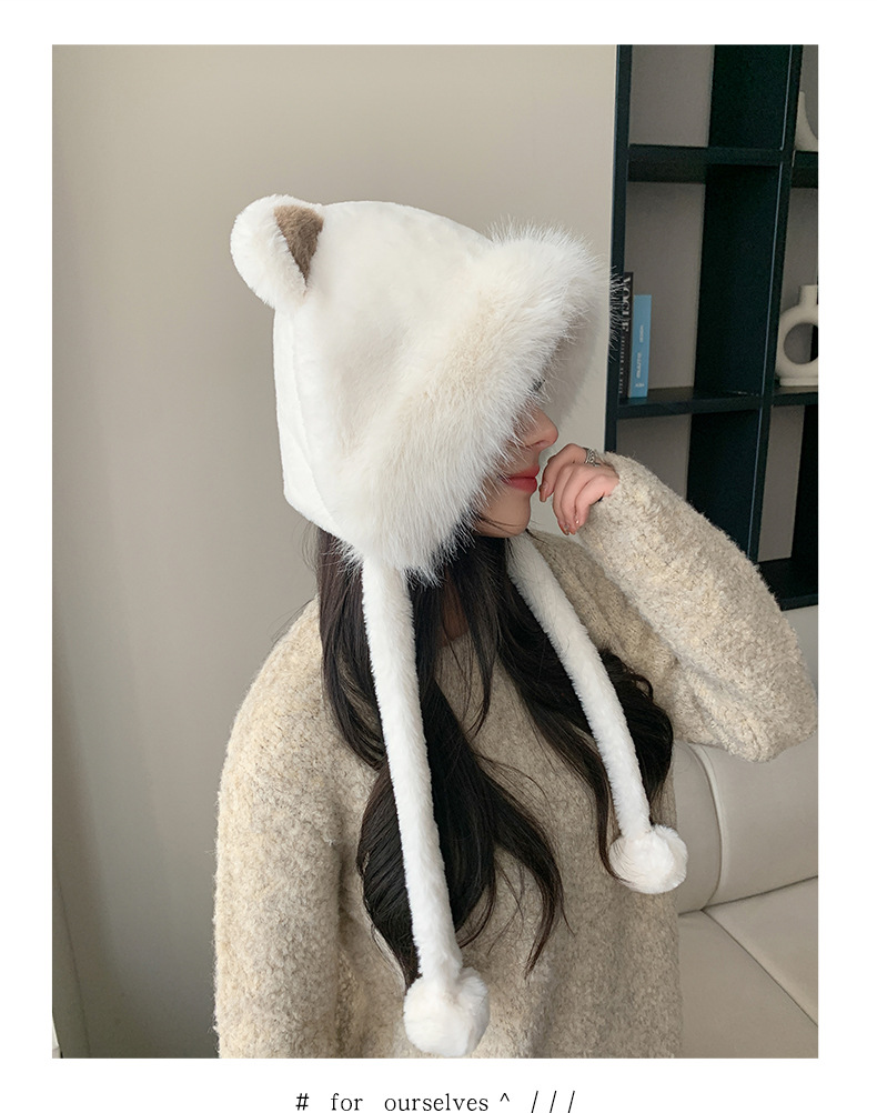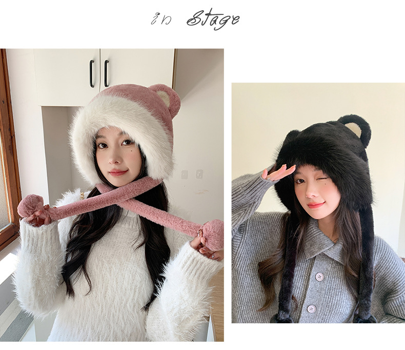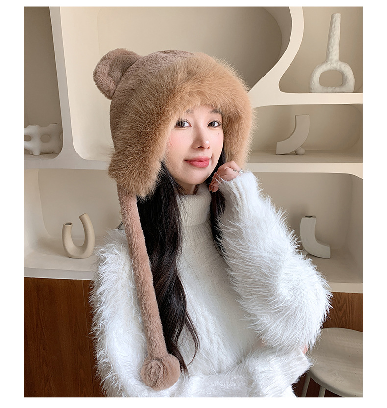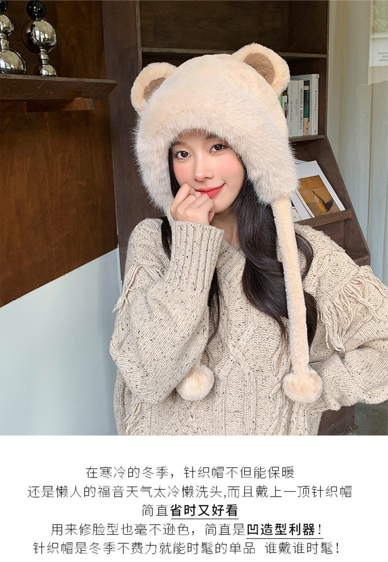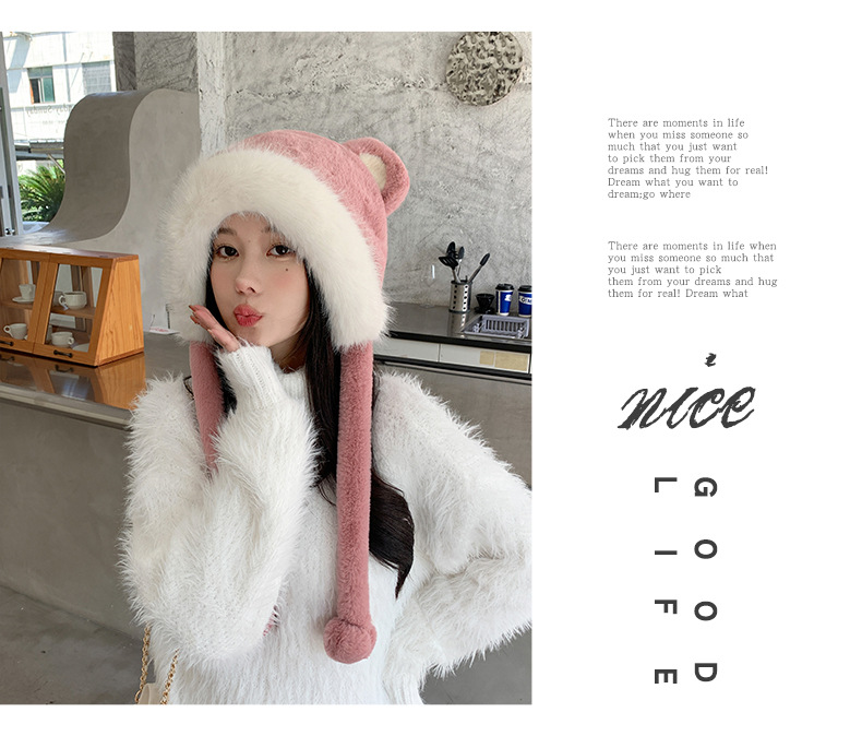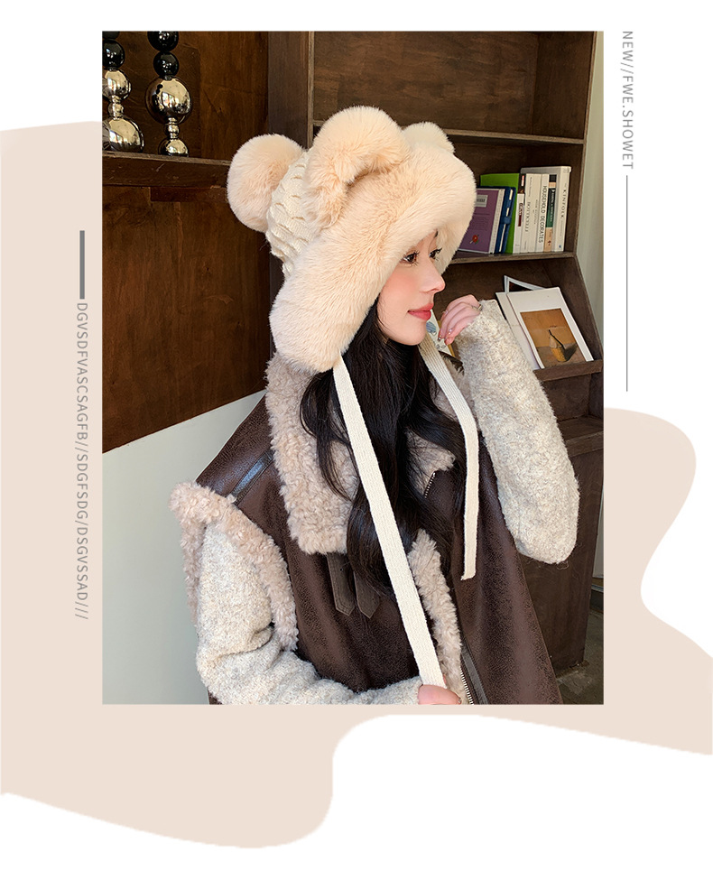 新しいニット秋と冬の女性の韓国スタイルのかわいいぬいぐるみワンピース帽子屋外プラスベルベット暖かいスカーフプルオーバー帽子
