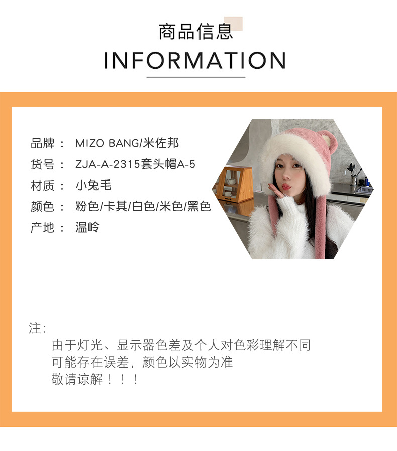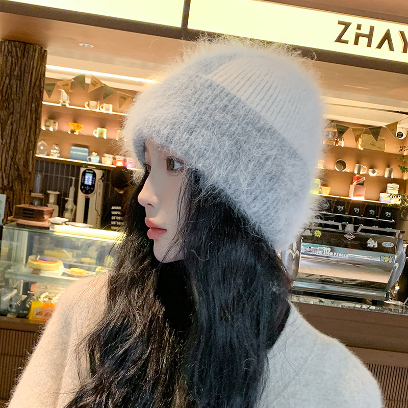 韓国風ニットラビットファープルオーバー帽子女性用秋冬豪華な暖かいカラーマッチング顔見せ小さなウール防寒帽子