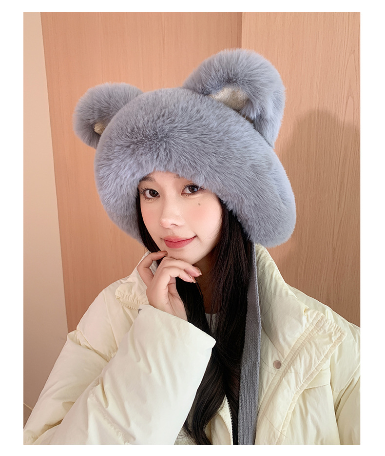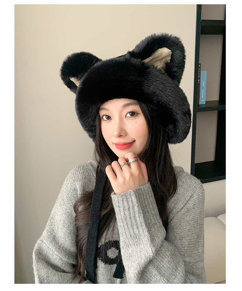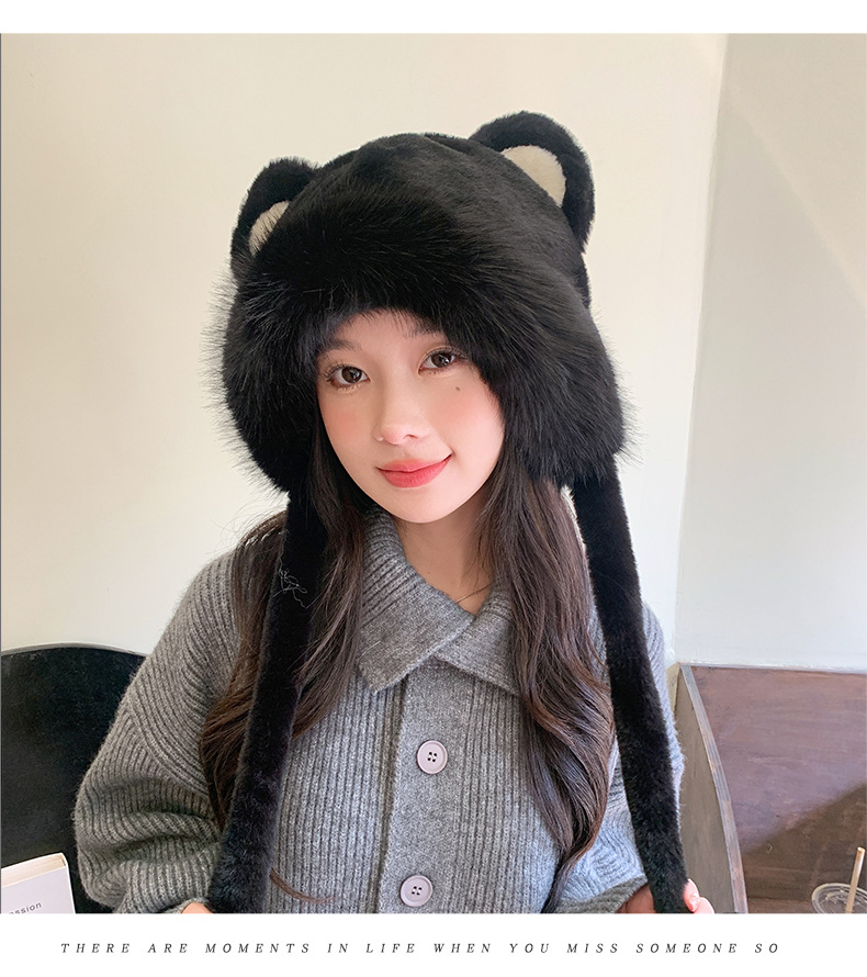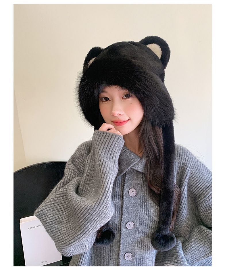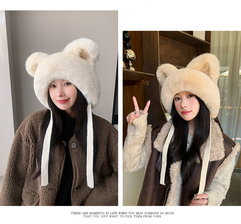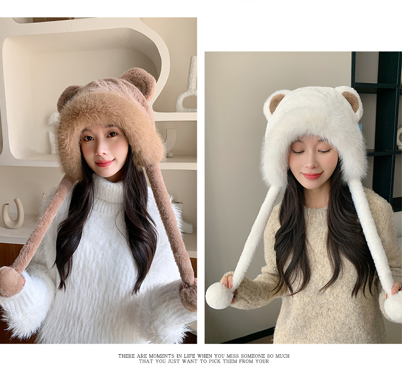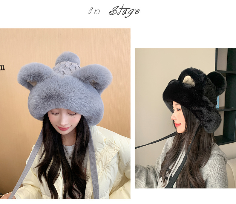 韓国版の新しい秋と冬のニットぬいぐるみ暖かい耳保護帽子女性用、キュートで甘い耳プルオーバーウール帽子トレンディ