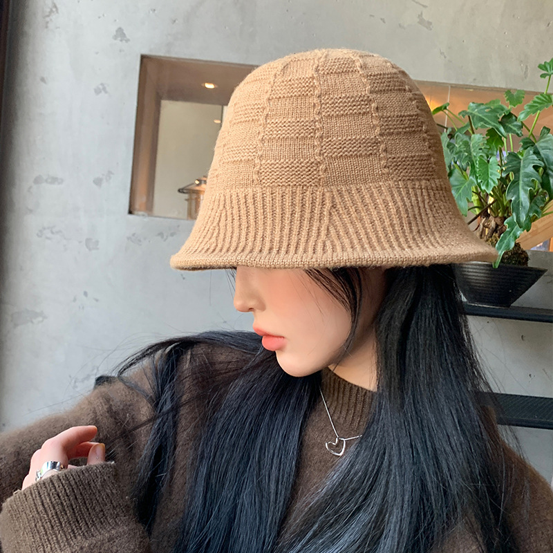 韓国版新型女性ニット純色シンプル秋冬保温毛糸帽子屋外旅行ファッションバケツ帽子