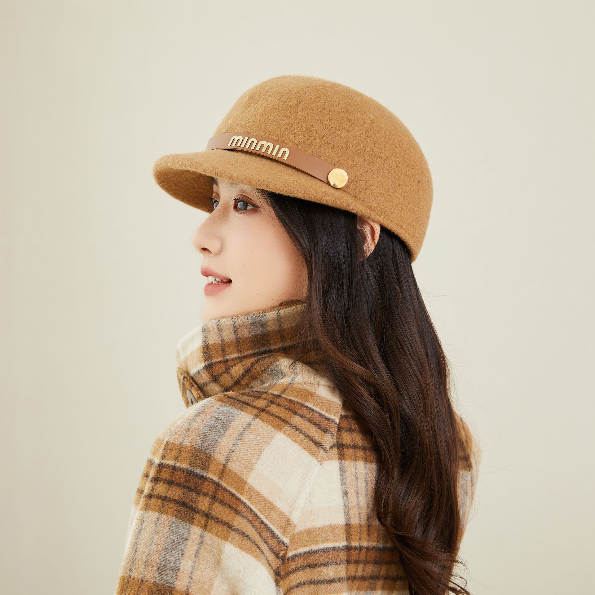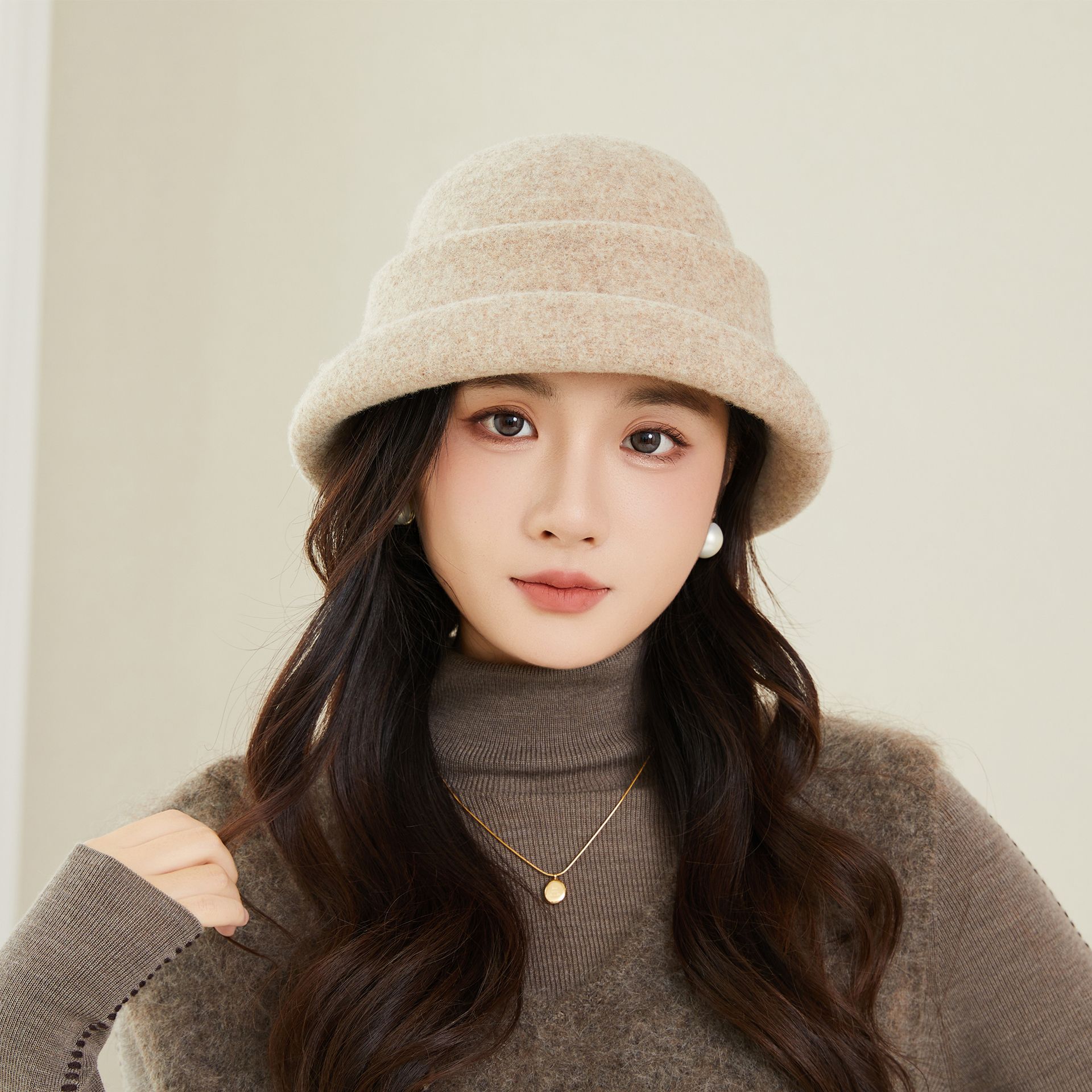 新款羊毛前翘盆帽秋冬季时尚中老年女士毛呢帽子户外保暖气质盆帽