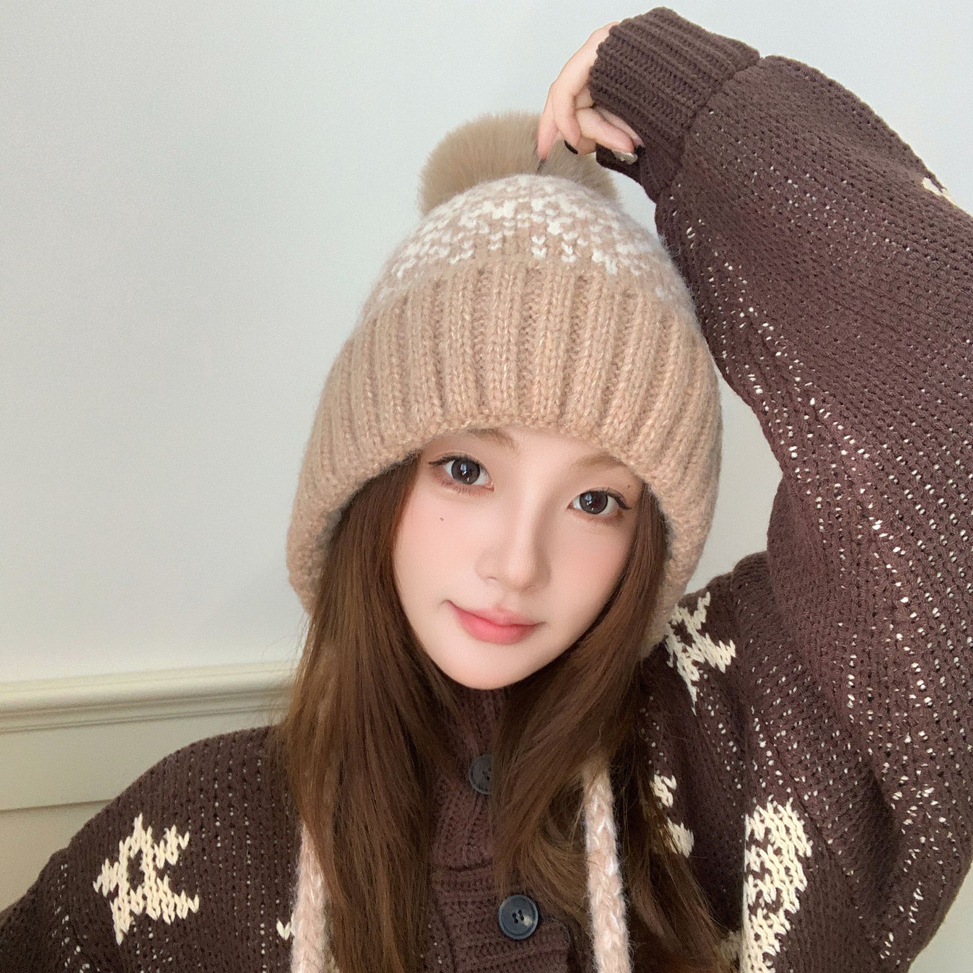 韓国版秋冬の女性の新型毛玉カバーの耳保護と毛の厚いニットの保温帽子の卸売り