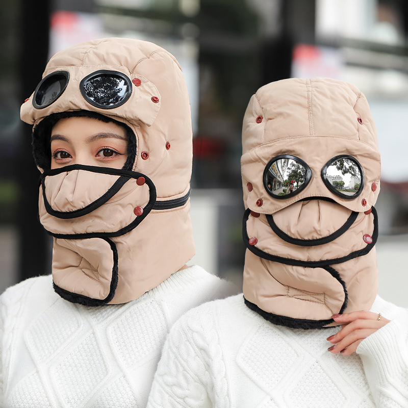 メガネ雷峰帽子男性と女性の暖かい帽子秋と冬の屋外防寒耳保護プラスベルベットサイクリング綿帽子トレンディな卸売