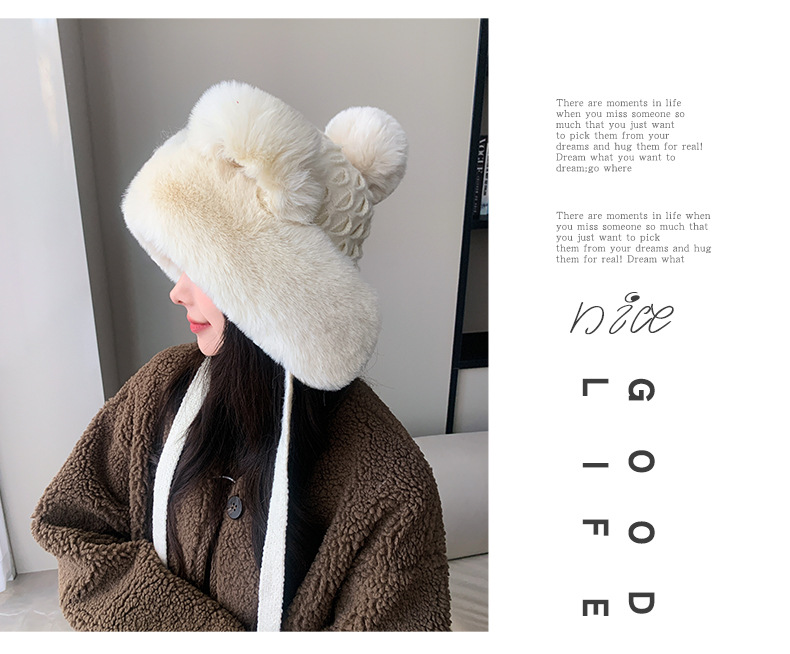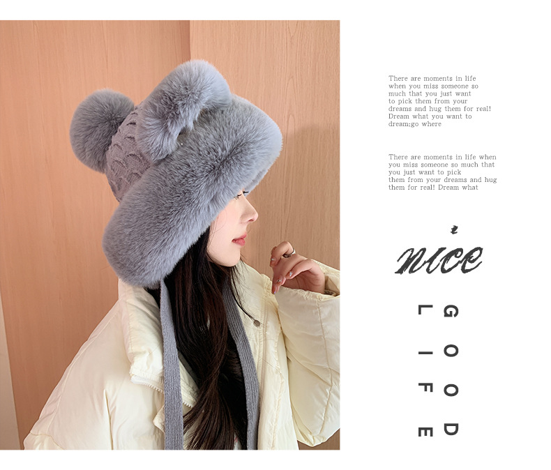 毛球帽子女秋冬季加绒保暖针织雷锋帽骑车防寒系带毛线套头帽批发