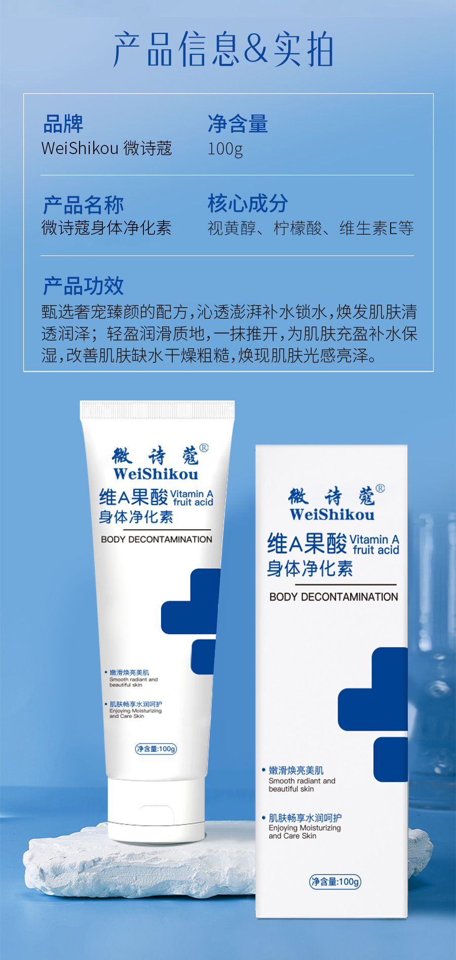 Spot Microshiko Vita A フルーツ酸ボディ浄化剤、さわやか、鎮静、保湿、角質除去、男性と女性の全身に適しています。