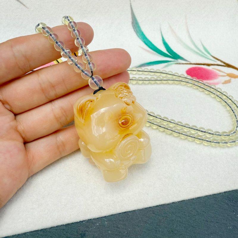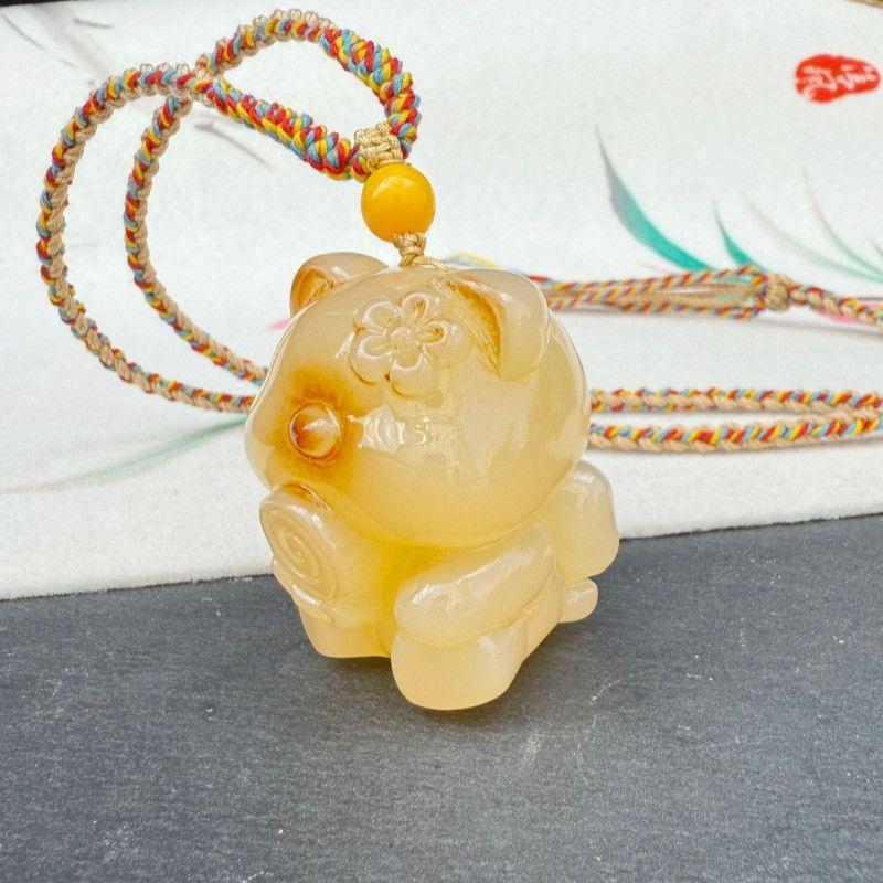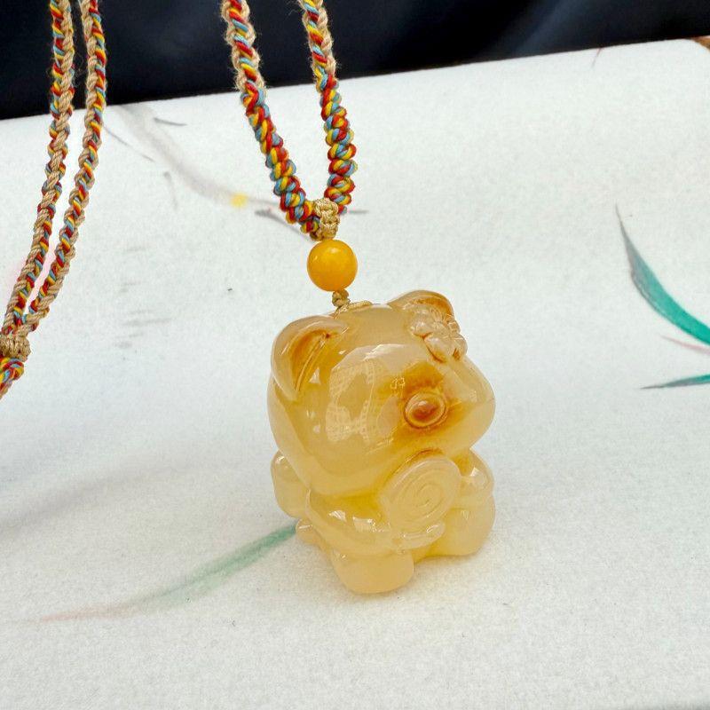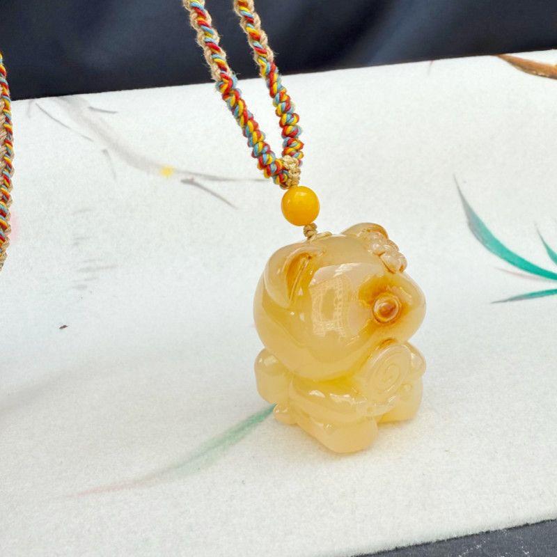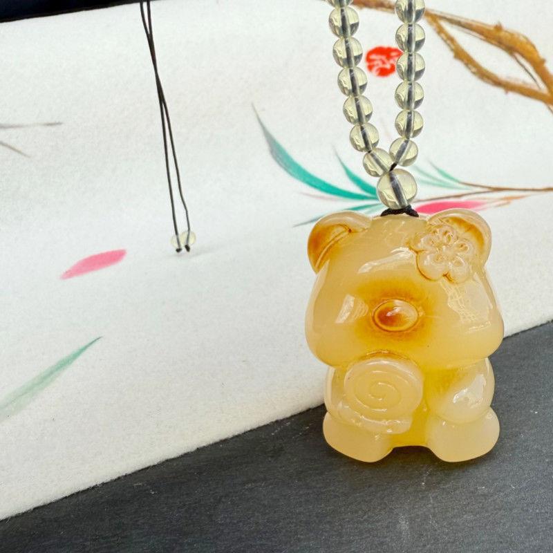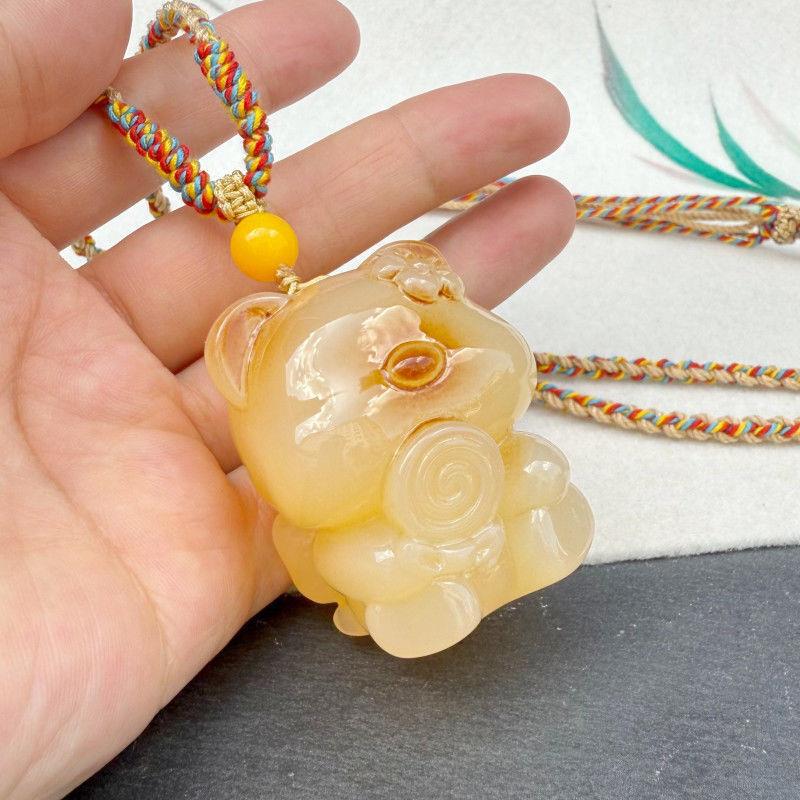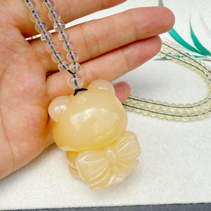 最適化された黄色の琥珀の美しい色の蜜蝋クマのペンダント黄色の蜂蜜とハンドメイドのロープロリポップクマの蜜蝋