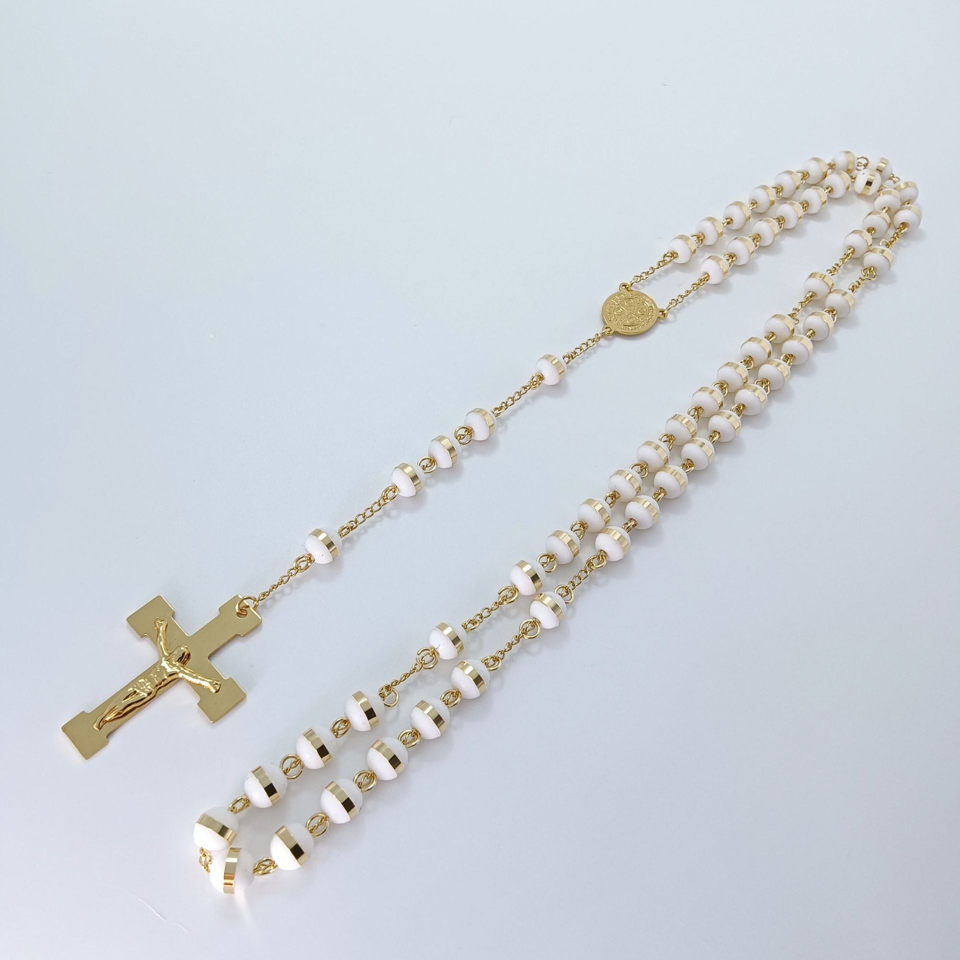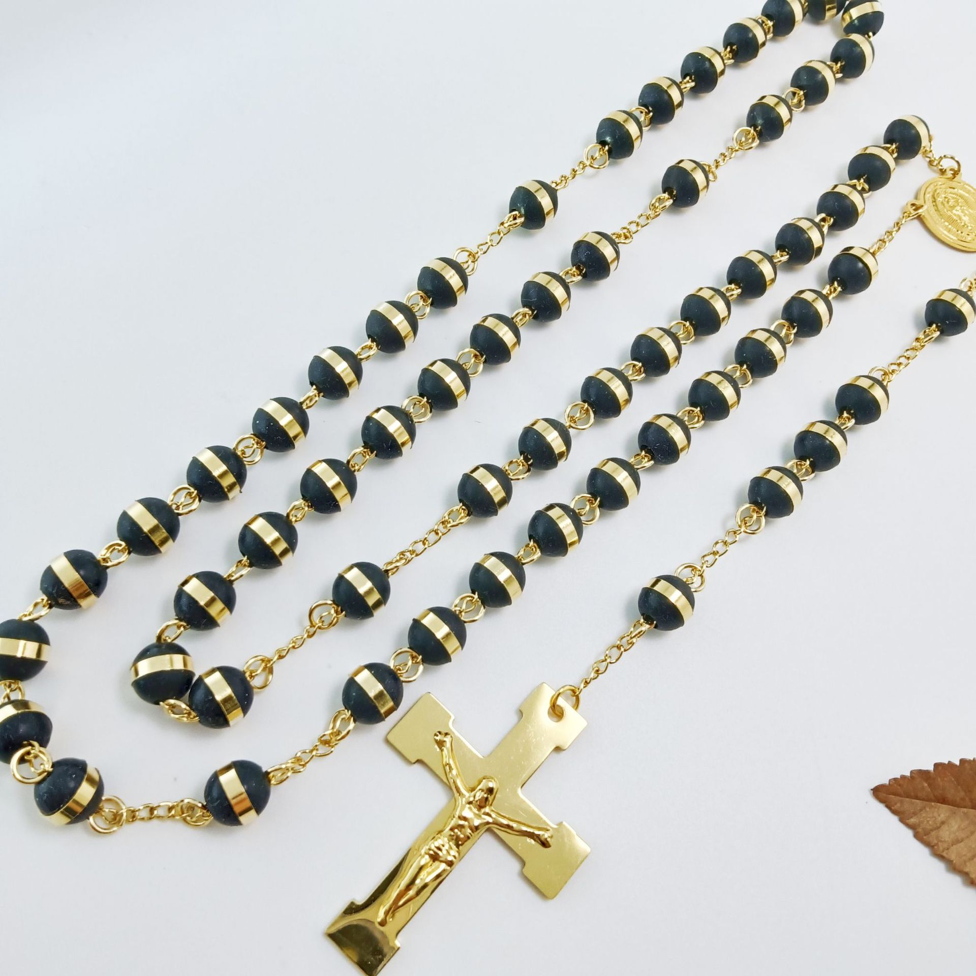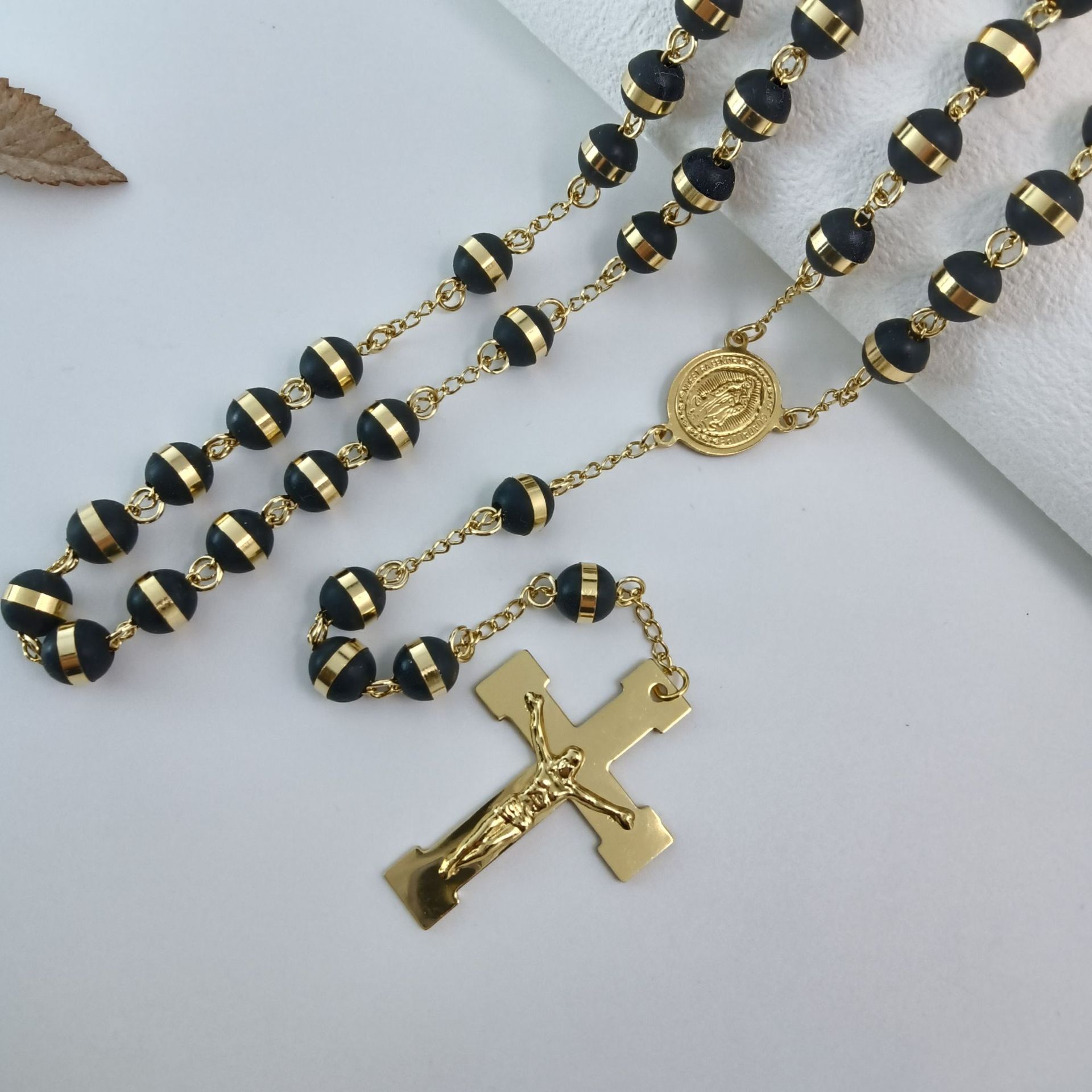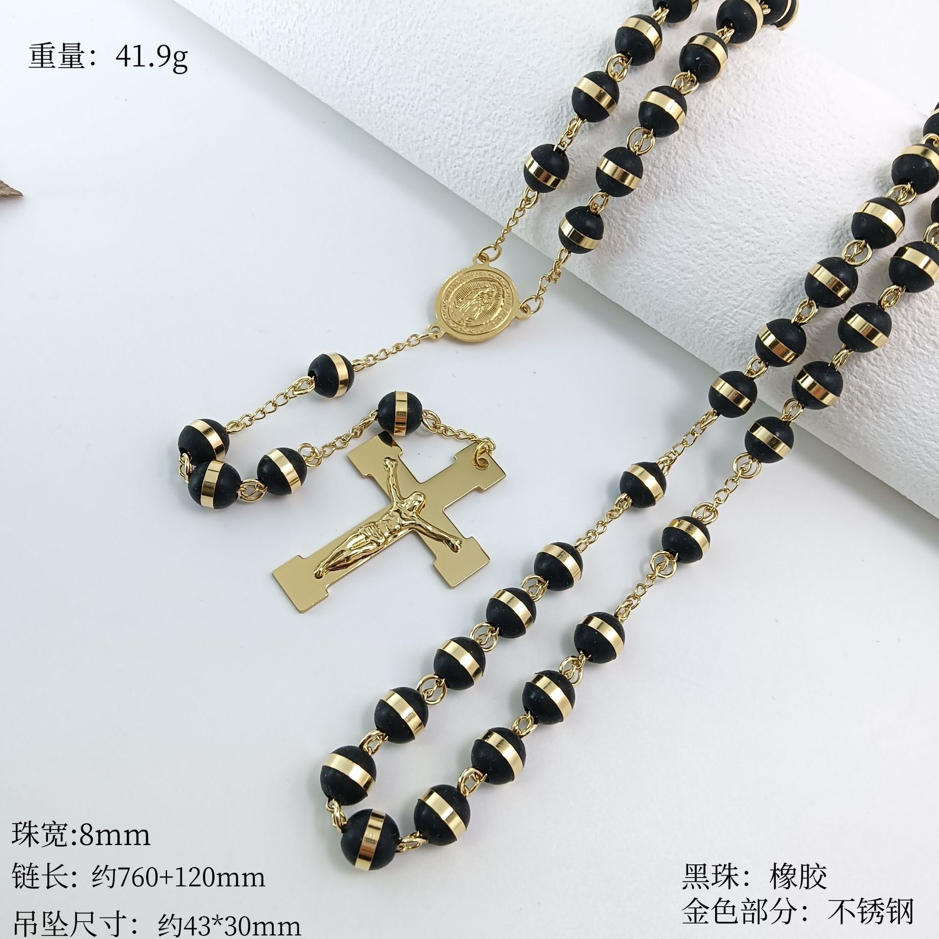 国境を越えた外国貿易の人気クロスネックレス、ヨーロッパとアメリカのトレンディなデザイン、ロザリオビーズ宗教ネックレス、ステンレススチールネックレス
