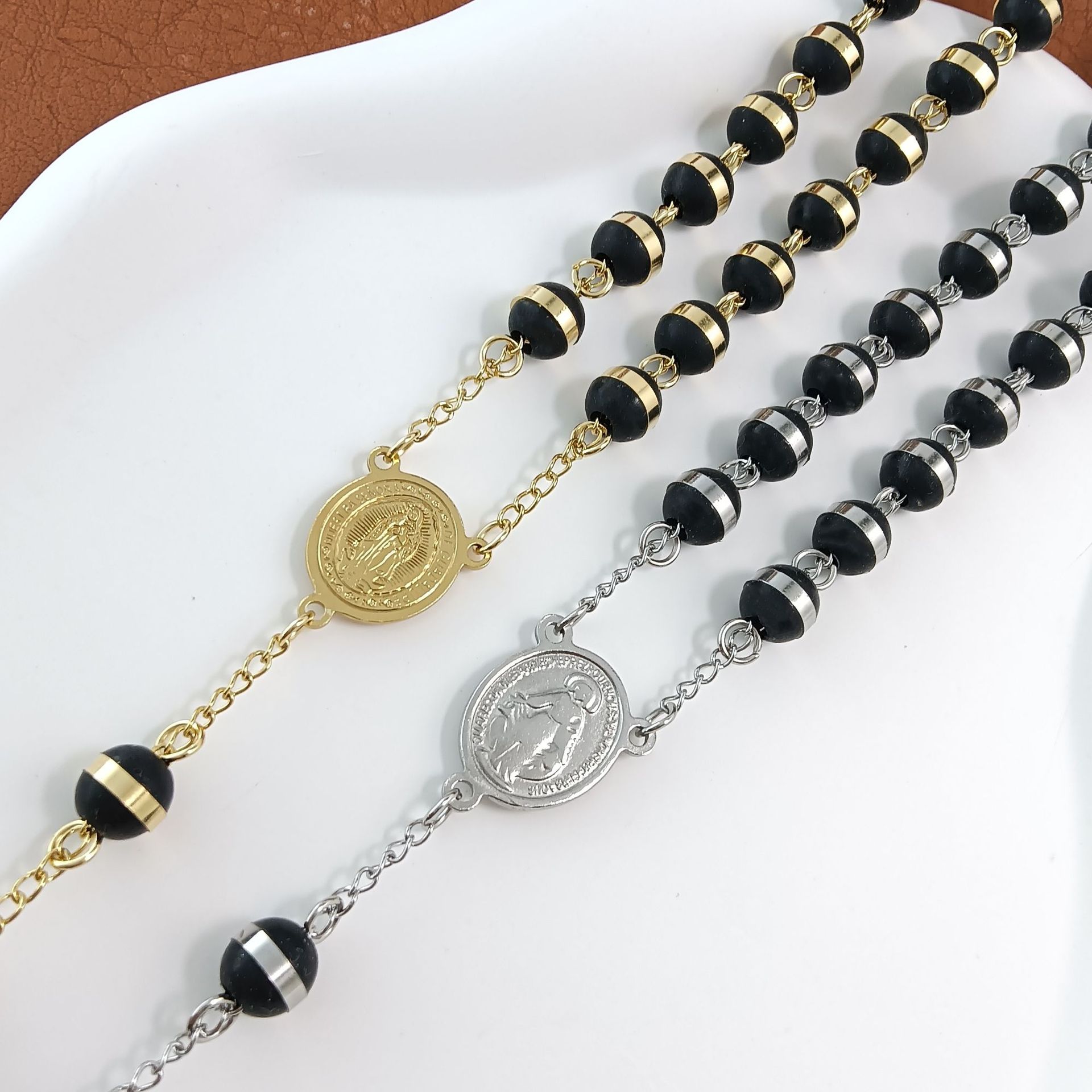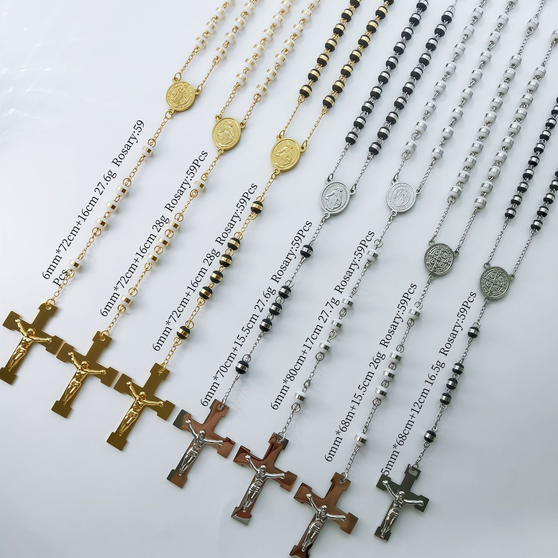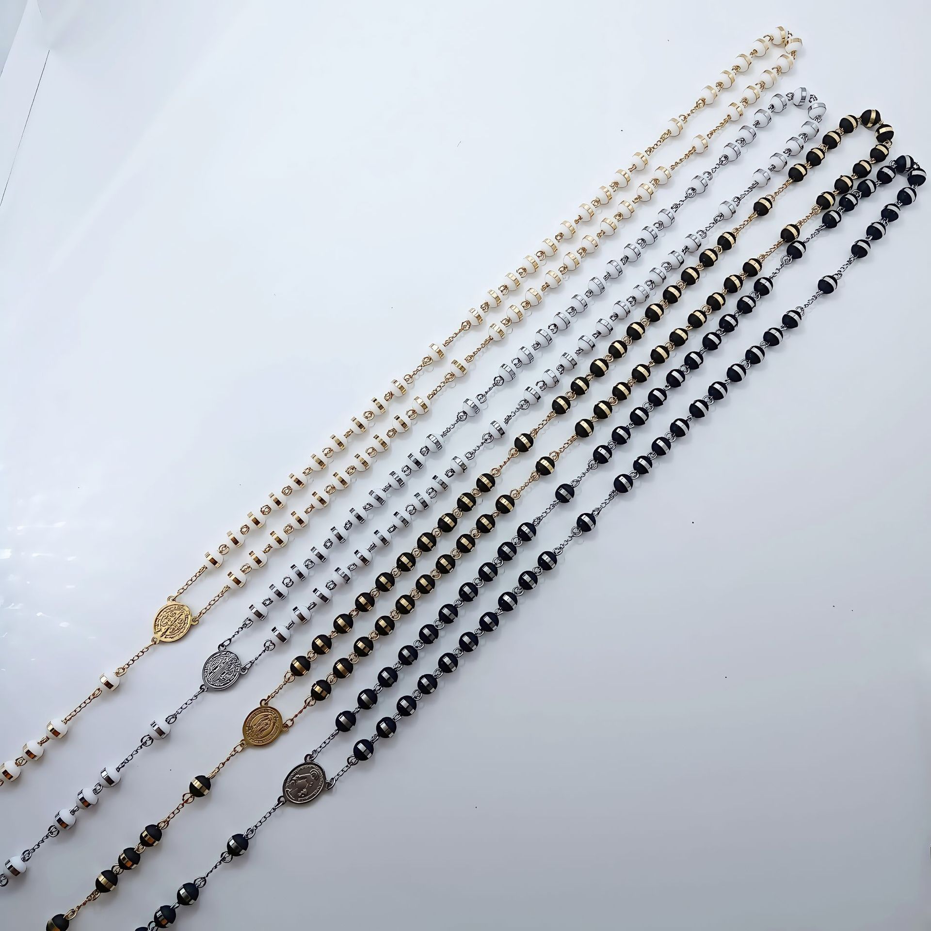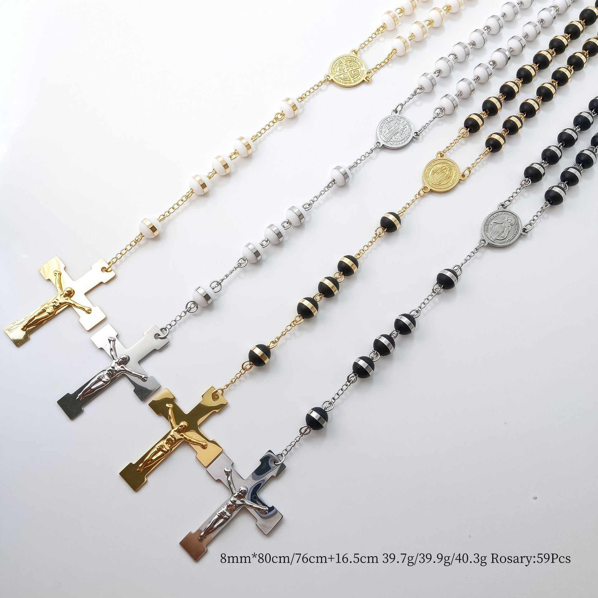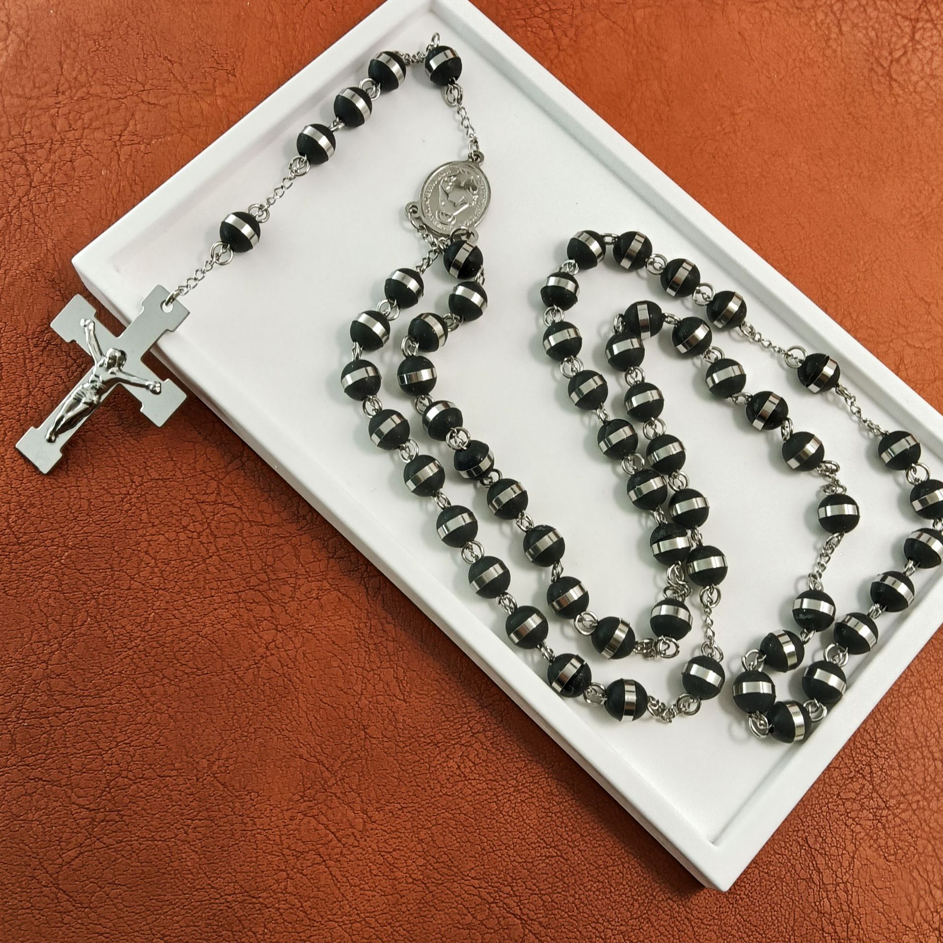 国境を越えた外国貿易の人気クロスネックレス、ヨーロッパとアメリカのトレンディなデザイン、ロザリオビーズ宗教ネックレス、ステンレススチールネックレス