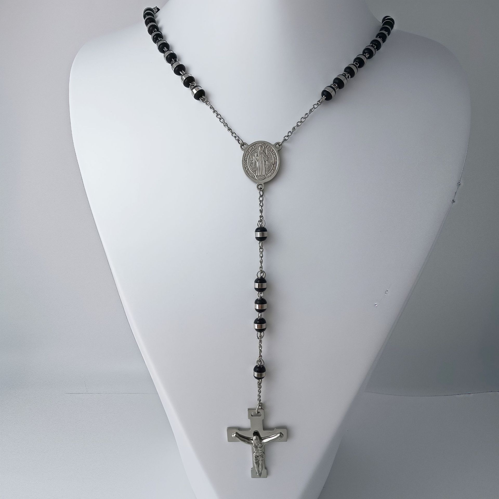 国境を越えて人気がある6mmJesus Necklace黒数珠ステンレスネックレス源メーカー直販