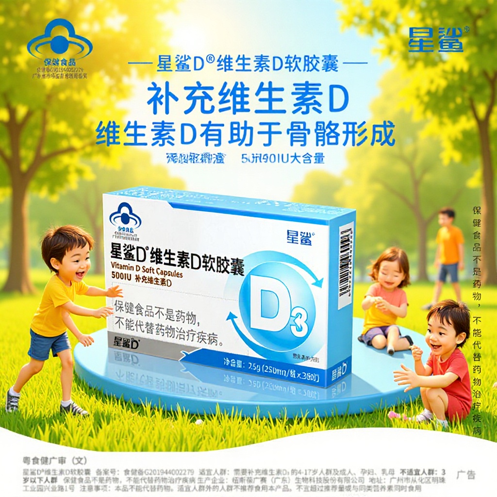 星/鲨维生素d3软胶囊500单位儿童青少年成人促进钙吸收官方正品